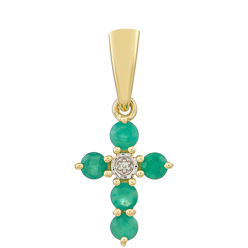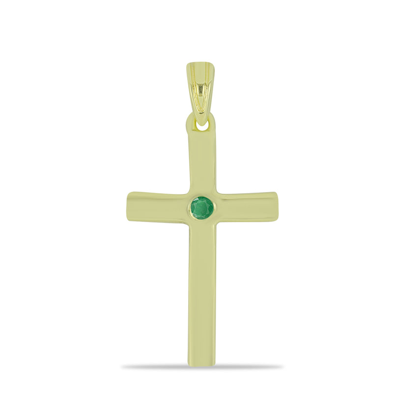 Kereszt 9 Karátos Arany Medál Brazil Smaragddal és Természetes Cirkónnal