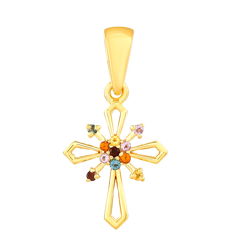Kereszt Arannyal Bevont Ezüst Medál Ametiszttel és Madeirai Citrinnel