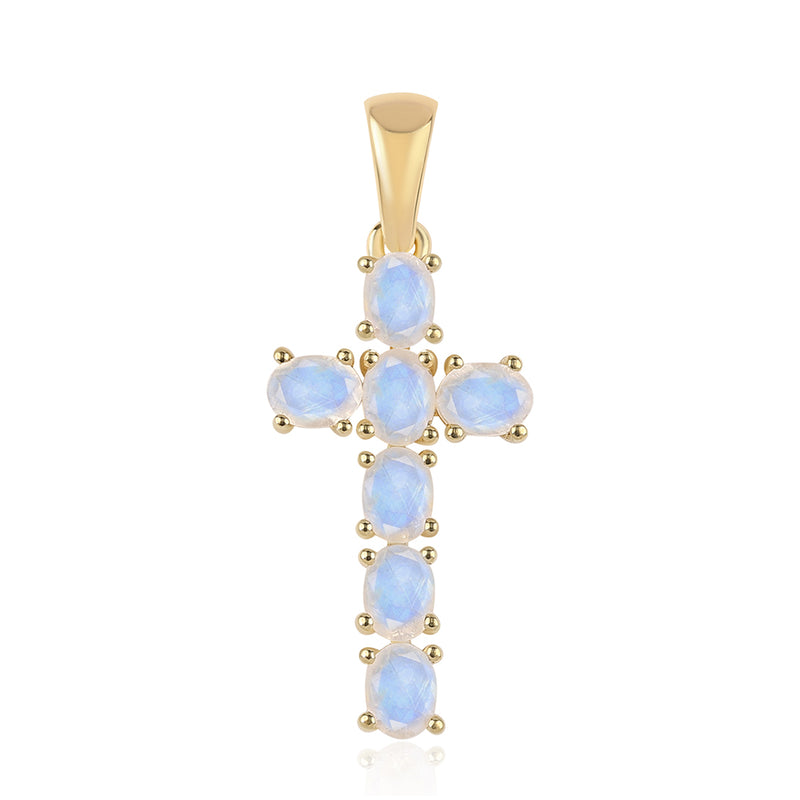 Kereszt Arannyal Bevont Ezüst Medál "AA" Osztályú Szivárvány Holdkővel