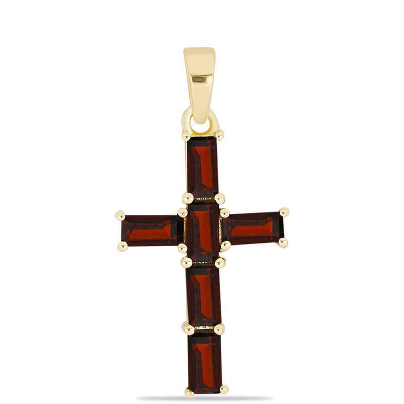 Kereszt Arannyal Bevont Ezüst Medál Barton Gránáttal és Fehér Topázzal