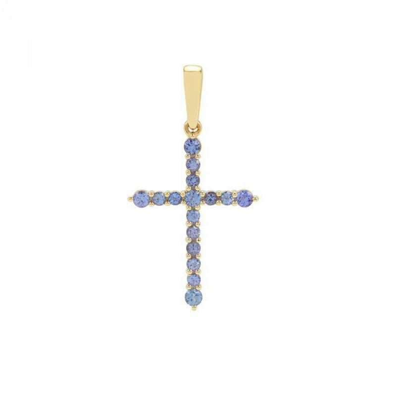 Kereszt 9 Karátos Arany Medál "AAA" Osztályú Tanzanittal