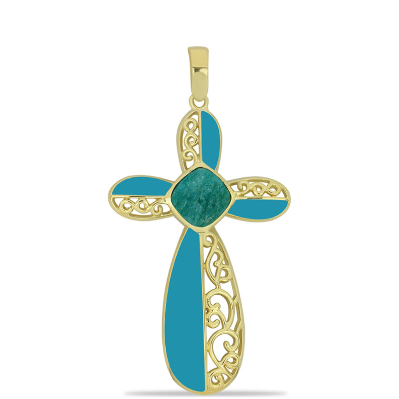Kereszt Arannyal Bevont Ezüst Medál Amazonittal