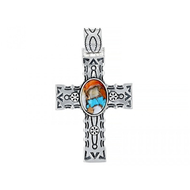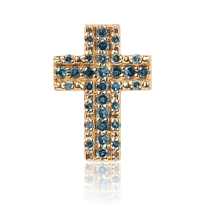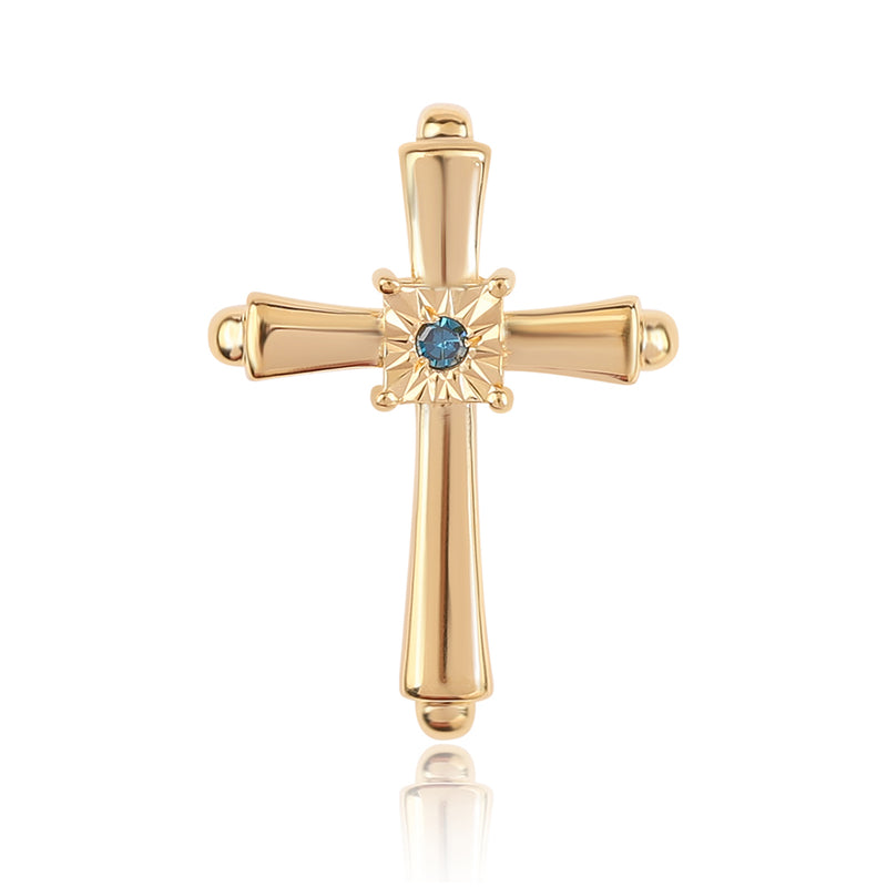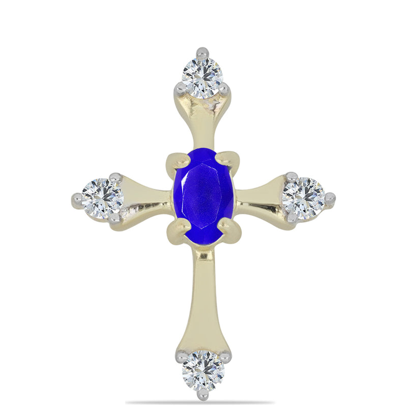 Kereszt Arannyal Bevont Ezüst Medál Kék Gyémánttal és Fehér Gyémánttal