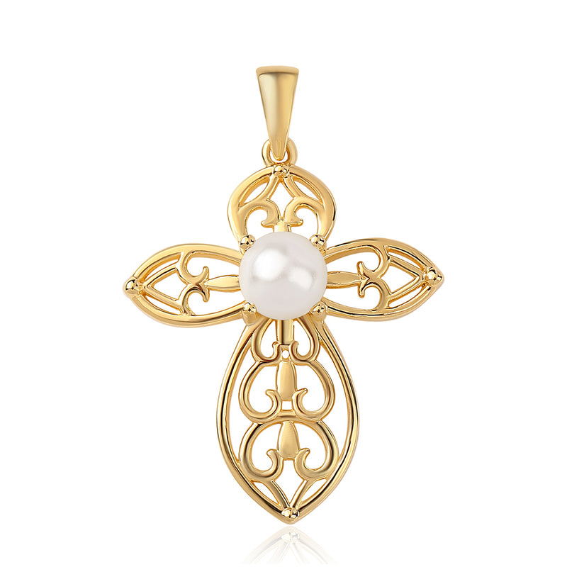 Kereszt Arannyal Bevont Ezüst Medál Fehér Édesvízi Kagylógyönggyel