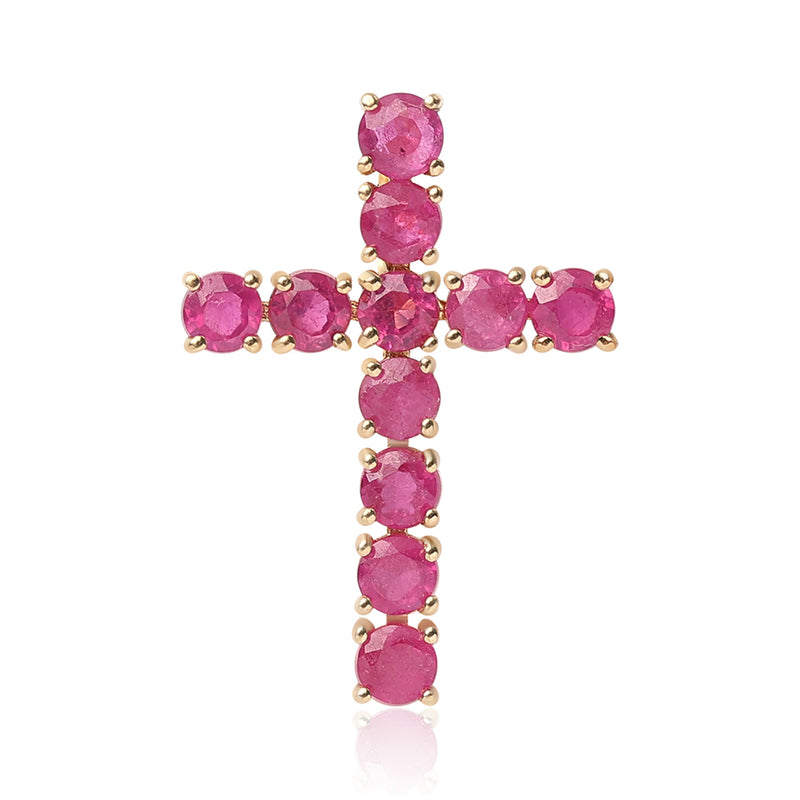 Kereszt Arannyal Bevont Ezüst Medál Mozambiquei Rubinnal és Fehér Topázzal
