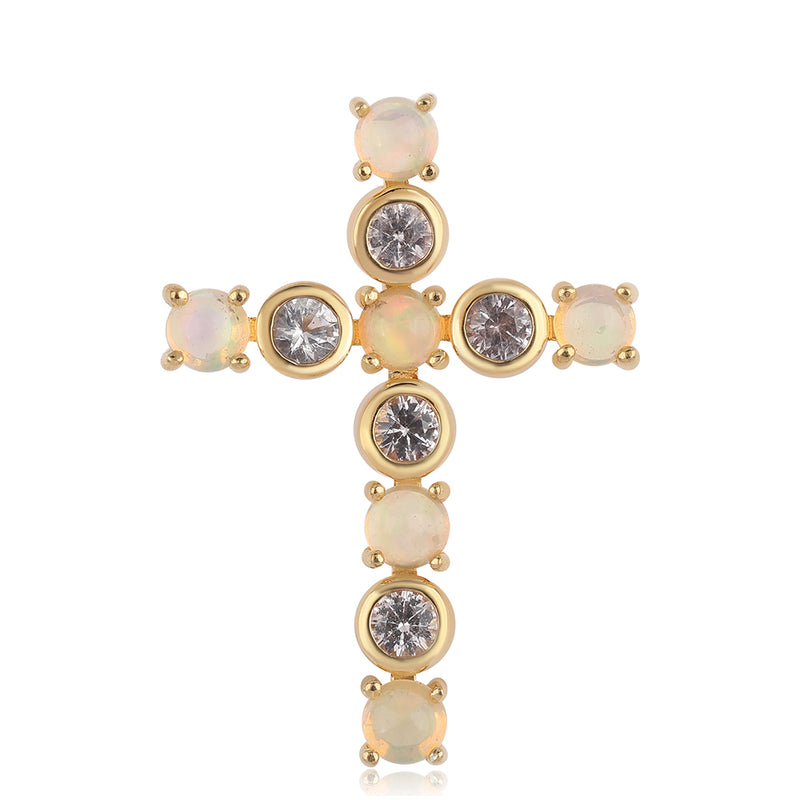 Kereszt Arannyal Bevont Ezüst Medál Etiópiai Opállal és Fehér Topázzal