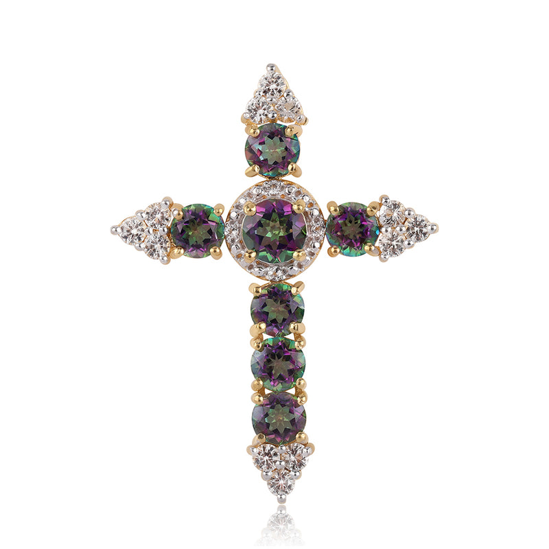 Kereszt Arannyal Bevont Ezüst Medál Misztikus Topázzal és Fehér Topázzal