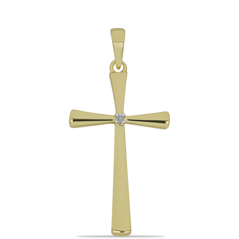 Kereszt Arannyal Bevont Ezüst Medál Fehér Gyémánttal