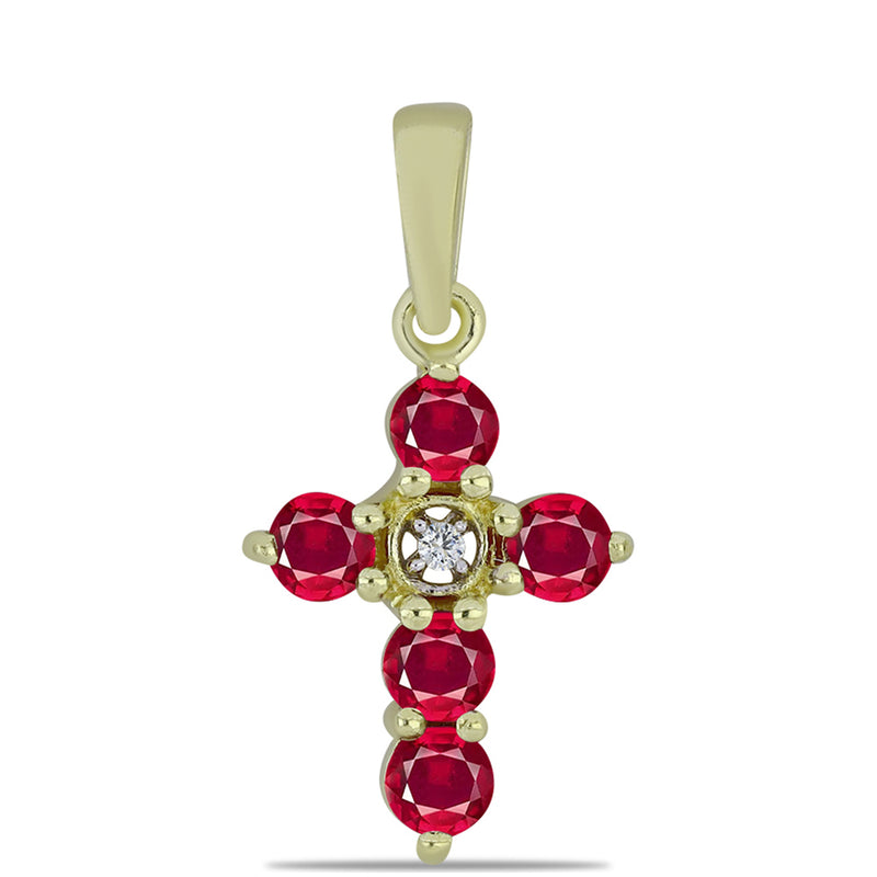 Kereszt Arannyal Bevont Ezüst Medál Madagaszkári Rubinnal és Fehér Topázzal