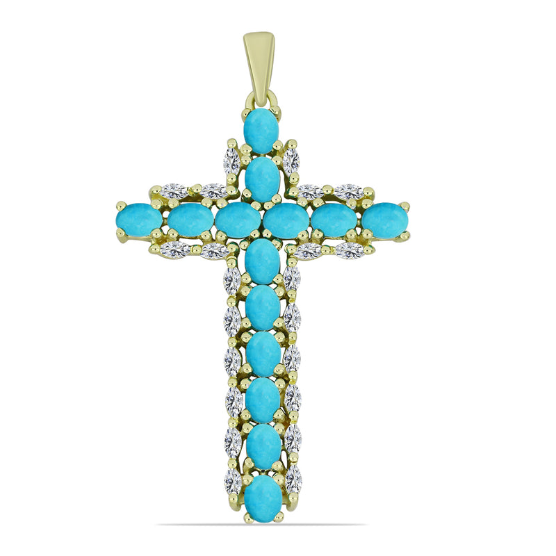 Kereszt Arannyal Bevont Ezüst Medál Csipkerózsika Türkizzel és Fehér Cirkónnal