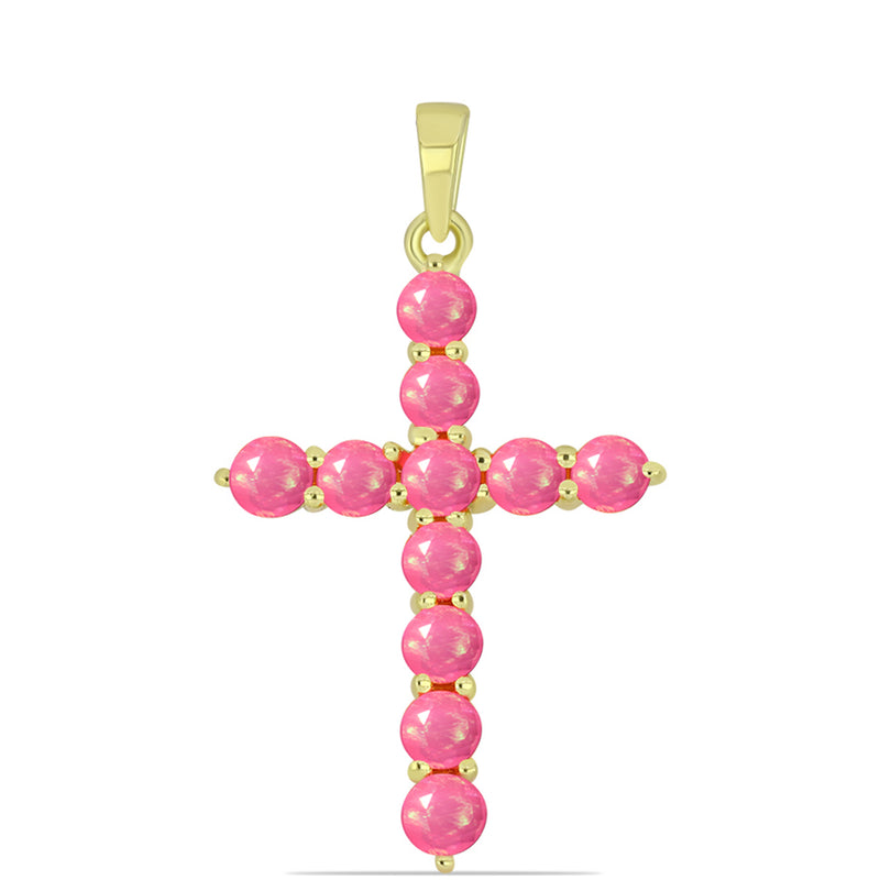 Kereszt Arannyal Bevont Ezüst Medál Rózsaszínű Lega Dembi Etióp Opállal