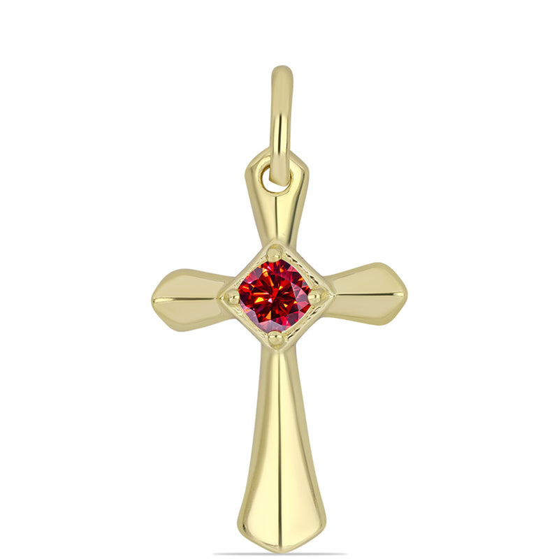 Kereszt Arannyal Bevont Ezüst Medál Fenséges Vörös Moissanite-tal
