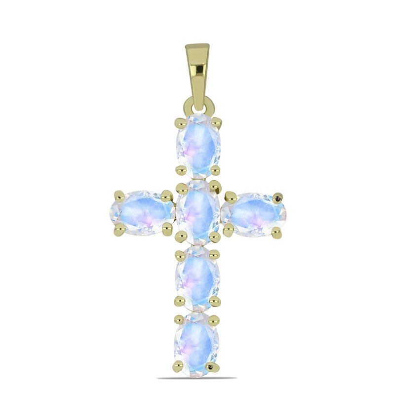 Kereszt Arannyal Bevont Ezüst Medál Szivárvány Holdkővel