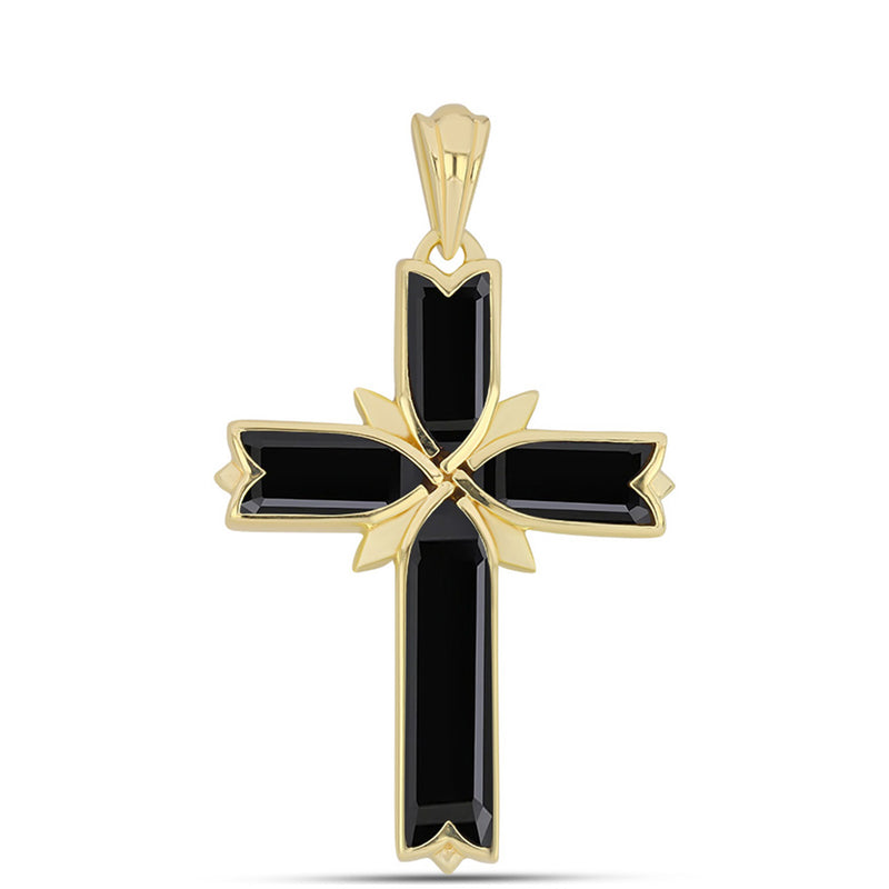 Kereszt Arannyal Bevont Ezüst Medál Fekete Onixszal