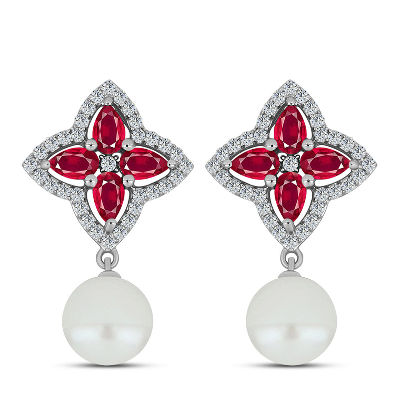 Ezüst Medál Madagaszkári Rubinnal és Fehér Édesvízi Kagylógyönggyel