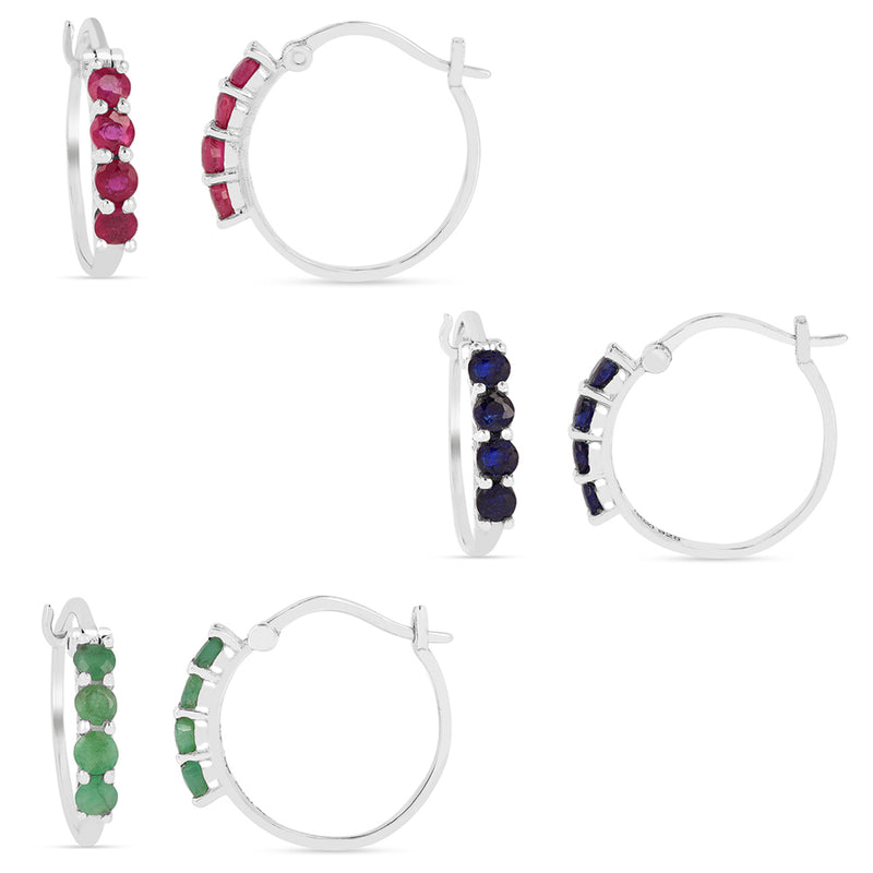 Ezüst Szett Thai Rubinnal és Brazil Smaragddal ( Fülbevaló )