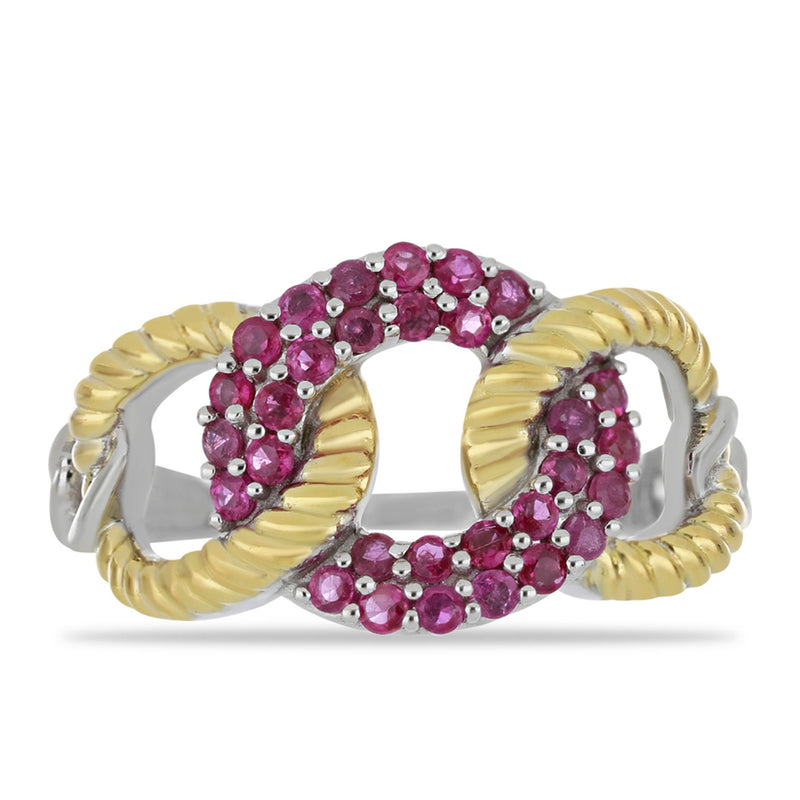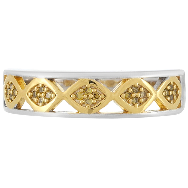 Sárga és Fehér Arannyal Bevont Ezüst Gyűrű Sárga Gyémánttal és Fehér Gyémánttal