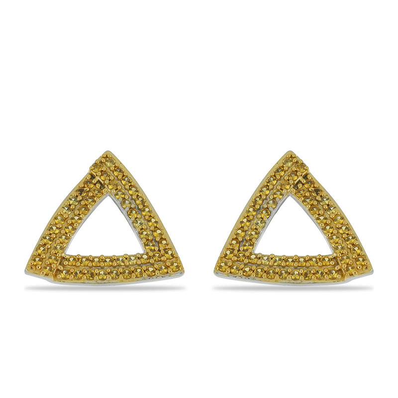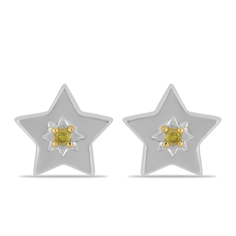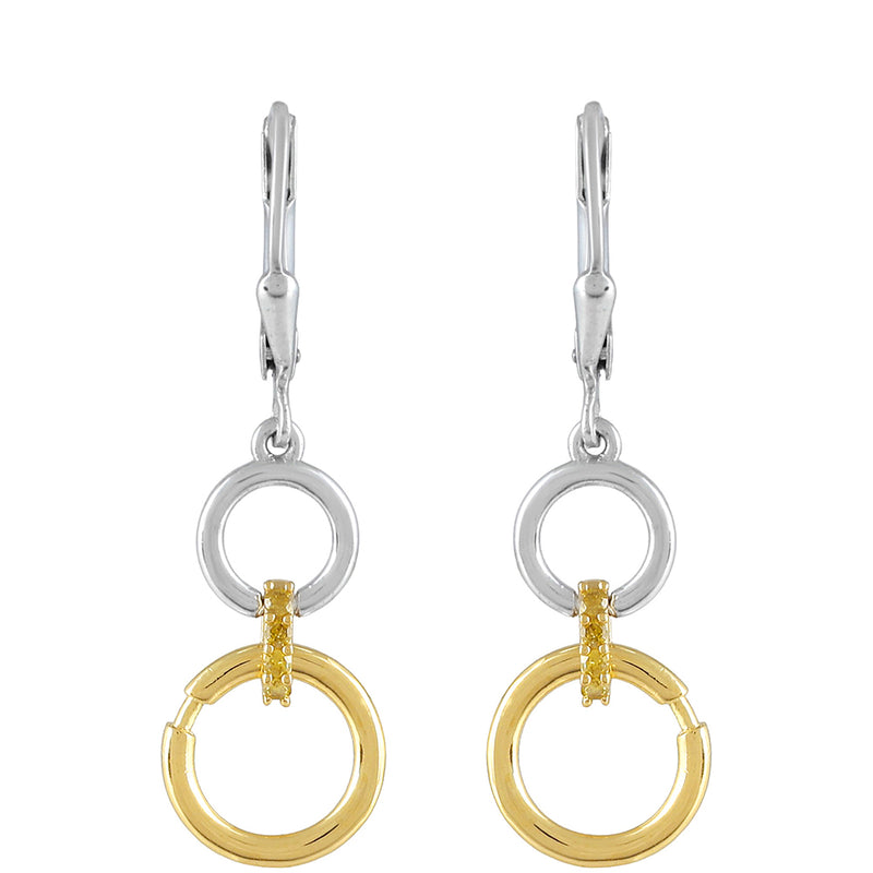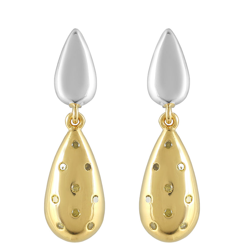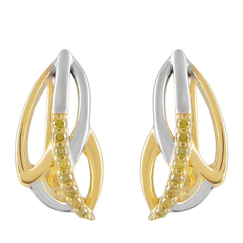 Sárga és Fehér Arannyal Bevont Ezüst Fülbevaló Sárga Gyémánttal és Fehér Gyémánttal