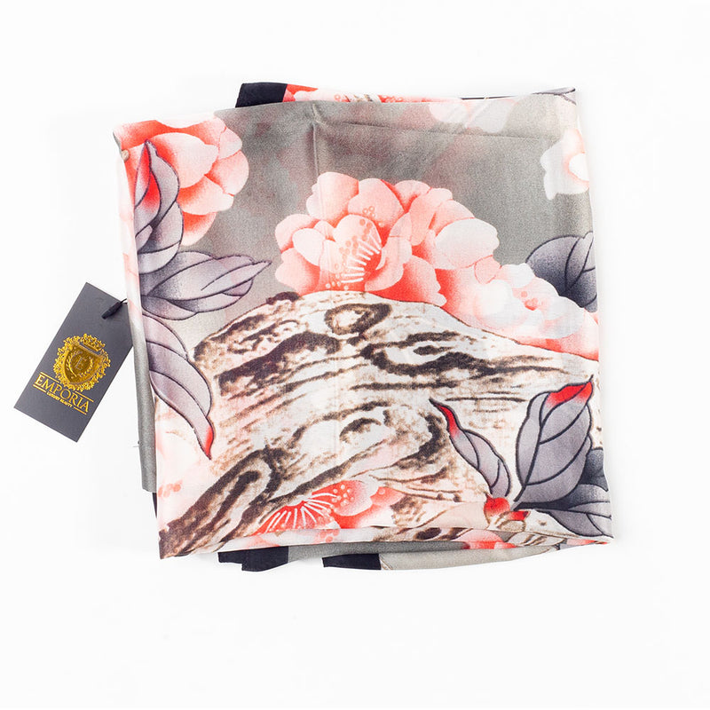 Virágfátyol Sál, 85 X 180 Cm, Szürke, 100% Vegán Selyem