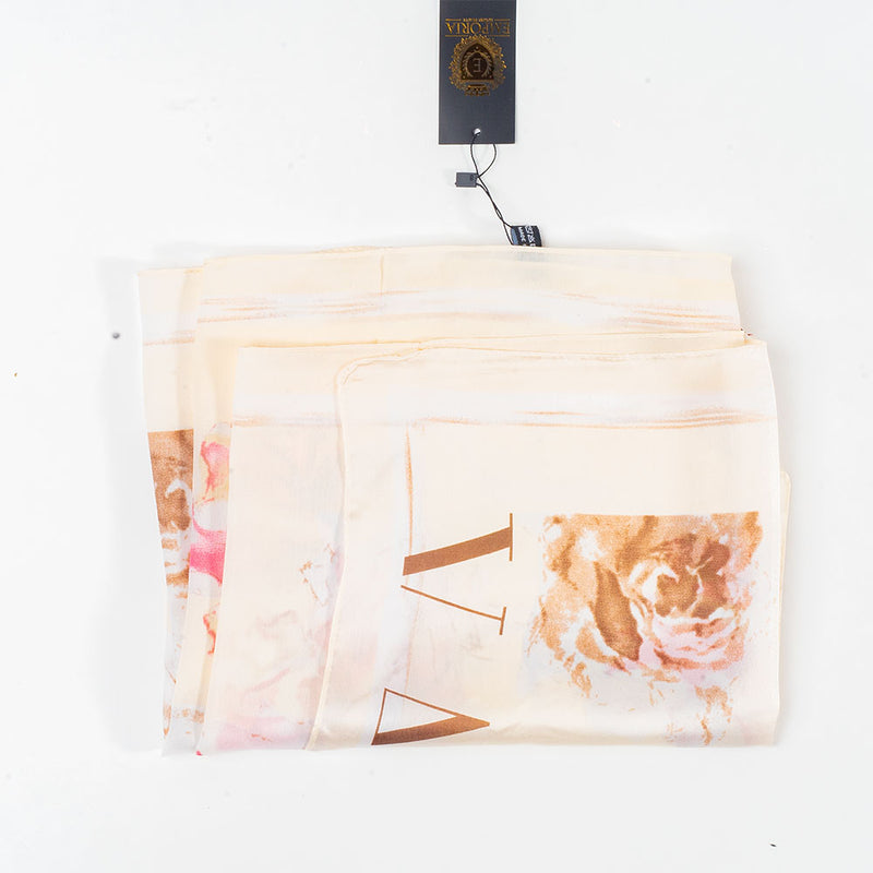 Virágok És Betűk Sál, 85 X 180 Cm, Fehér, 100% Vegán Selyem