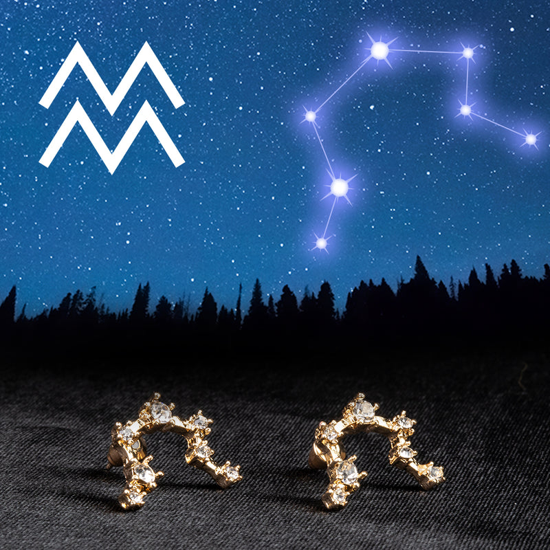 Vízöntő Arany tónusú Emporia Ötvözetű Fülbevaló Fehér Emporia® Kristállyal