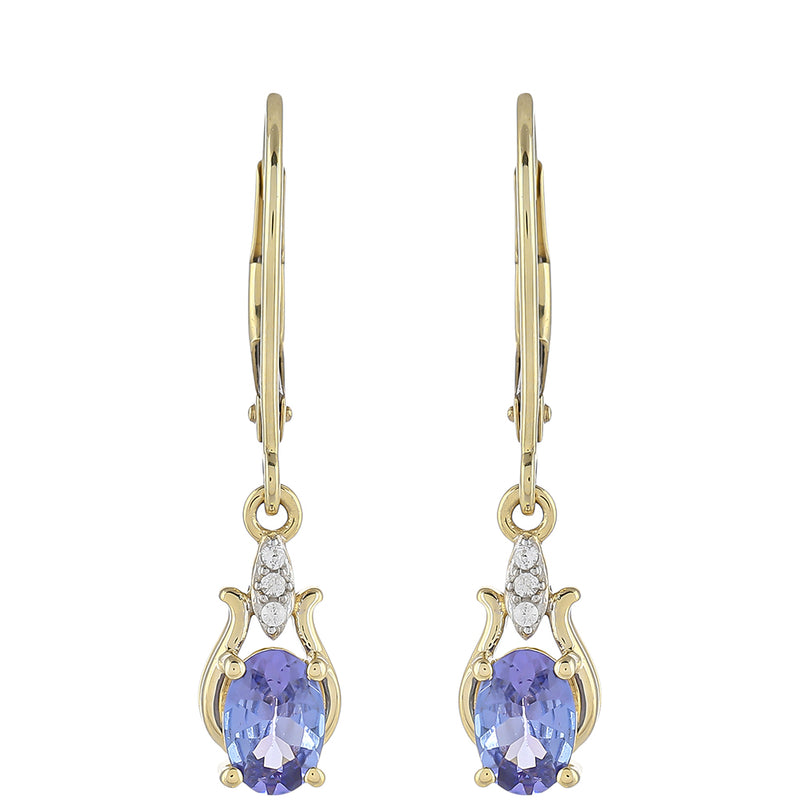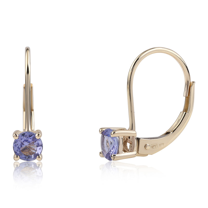 9 Karátos Arany Fülbevaló "AAA" Osztályú Tanzanittal és Természetes Cirkónnal