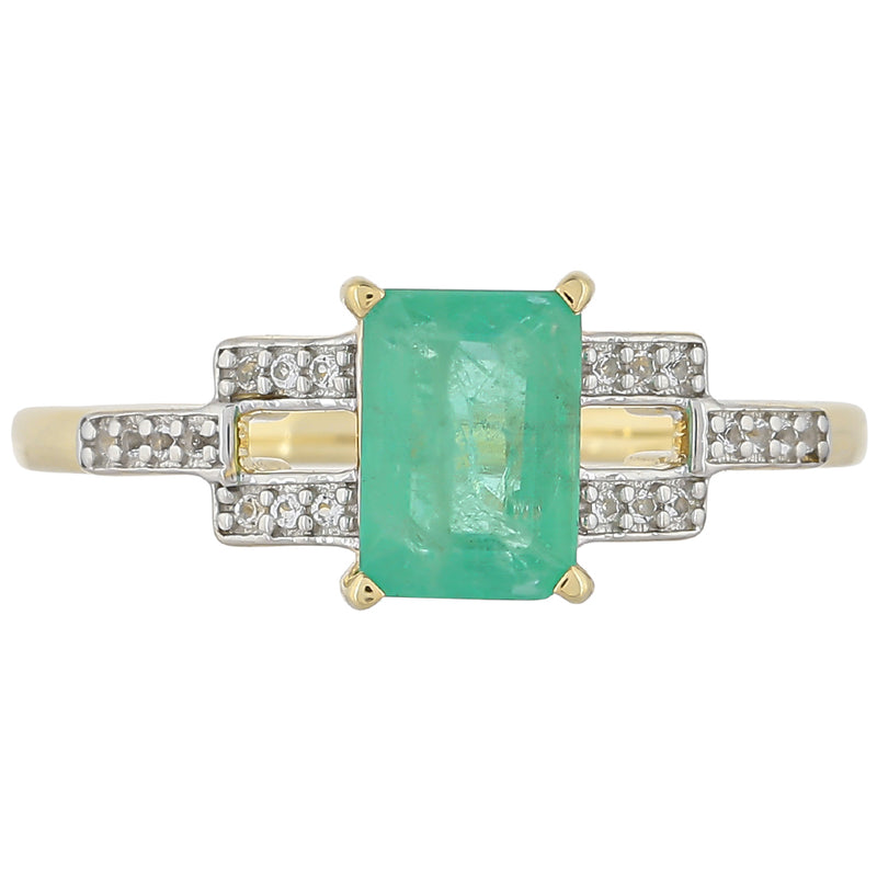 9 Karátos Arany Gyűrű Brazil Smaragddal és Természetes Fehér Cirkónnal