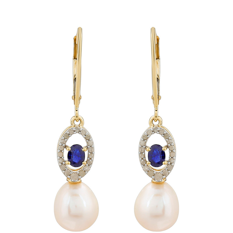 9 Karátos Arany Fülbevaló Thai Zafírral és Fehér Gyémánttal