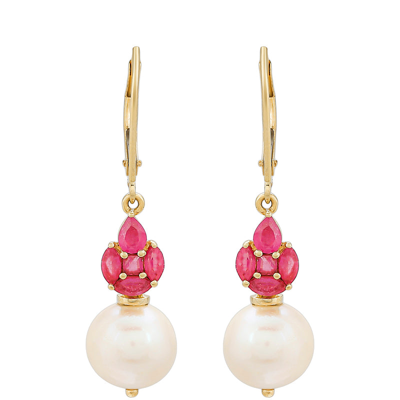 9 Karátos Arany Fülbevaló Thai Rubinnal és Fehér Édesvízi Kagylógyönggyel