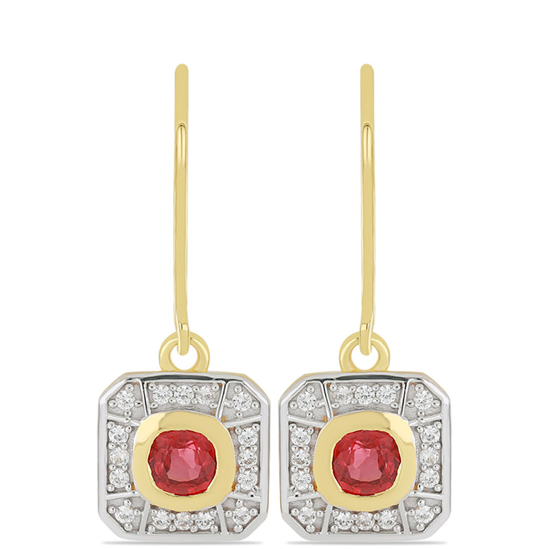 9 Karátos Arany Fülbevaló Madagaszkári Rubinnal és Természetes Fehér Cirkónnal