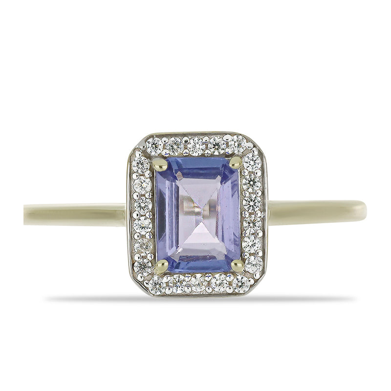 9 Karátos Arany Gyűrű "AAA" Osztályú Tanzanittal és Természetes Fehér Cirkónnal