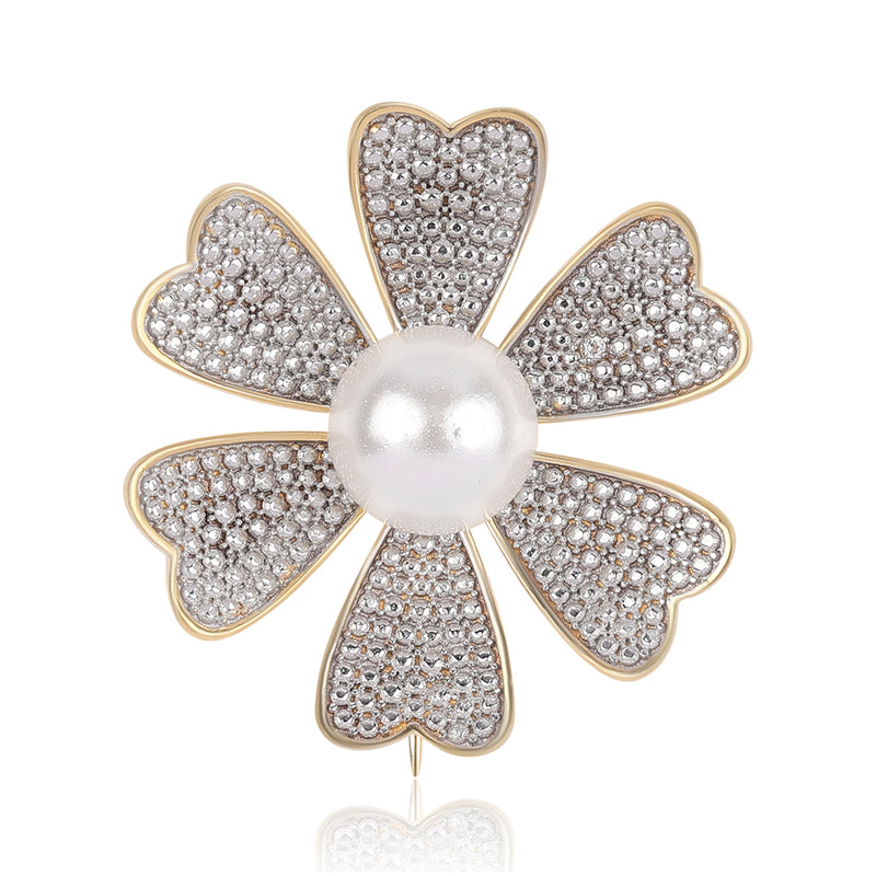 Arannyal Bevont Ezüst Bross Fehér Édesvízi Kagylógyönggyel