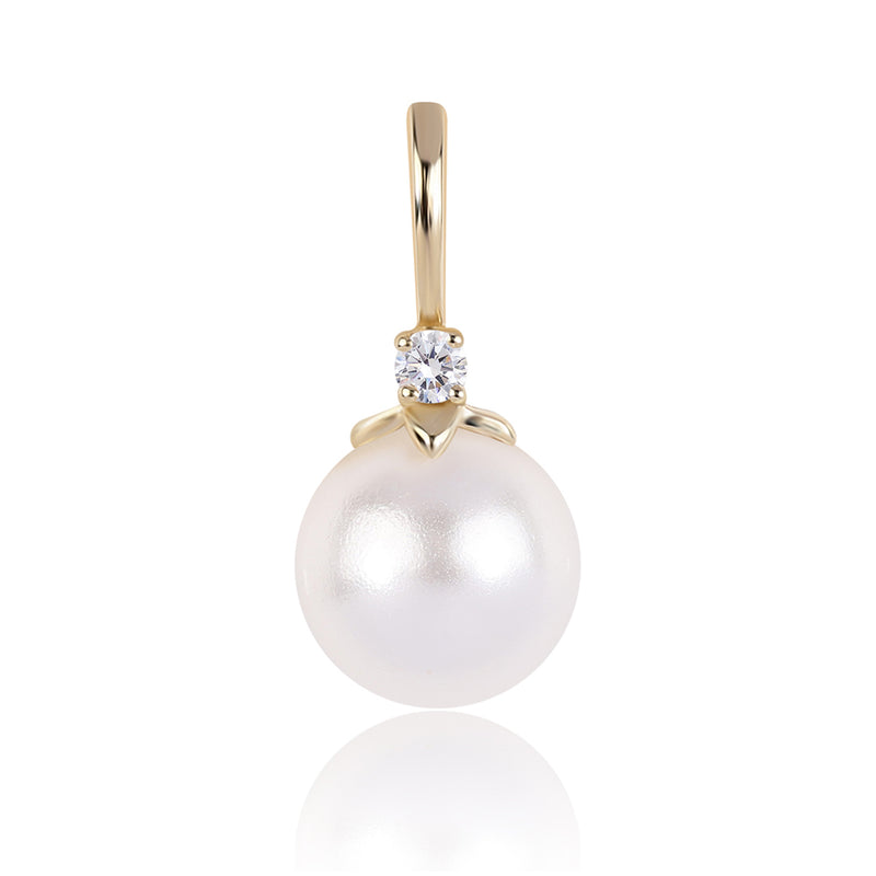 9 Karátos Arany Medál Fehér Édesvízi Kagylógyönggyel és Fehér Cirkónnal