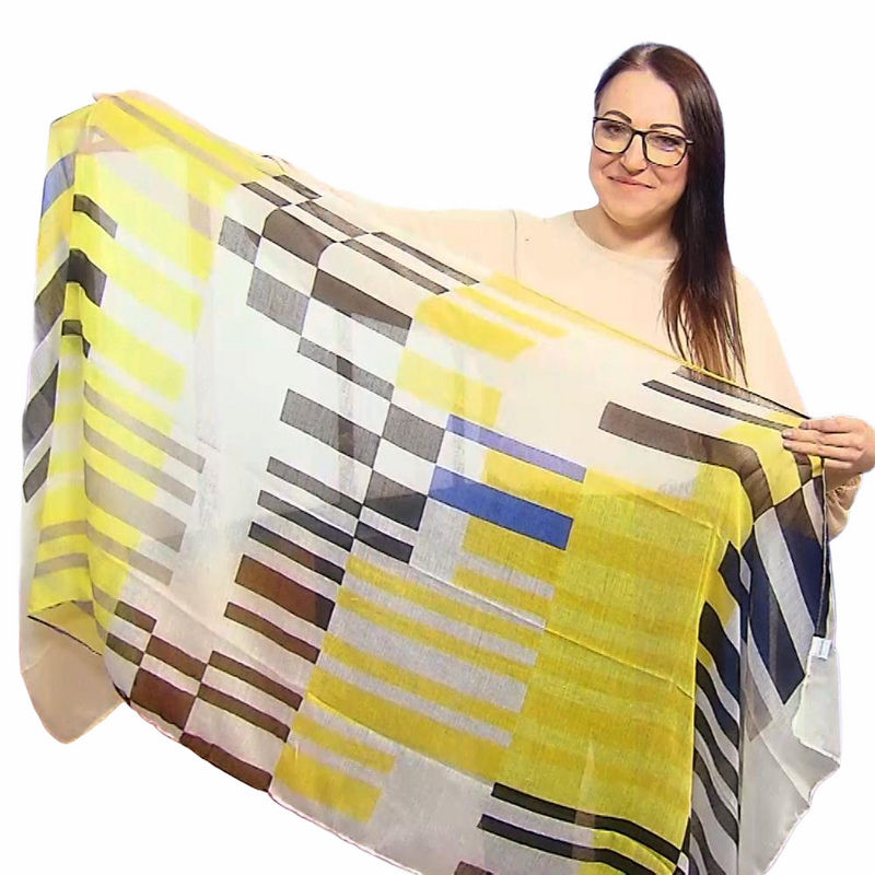 Absztrakt Téglalap Mintás, Sárga Fekete Sál-Kendő, 80 cm x 180 cm