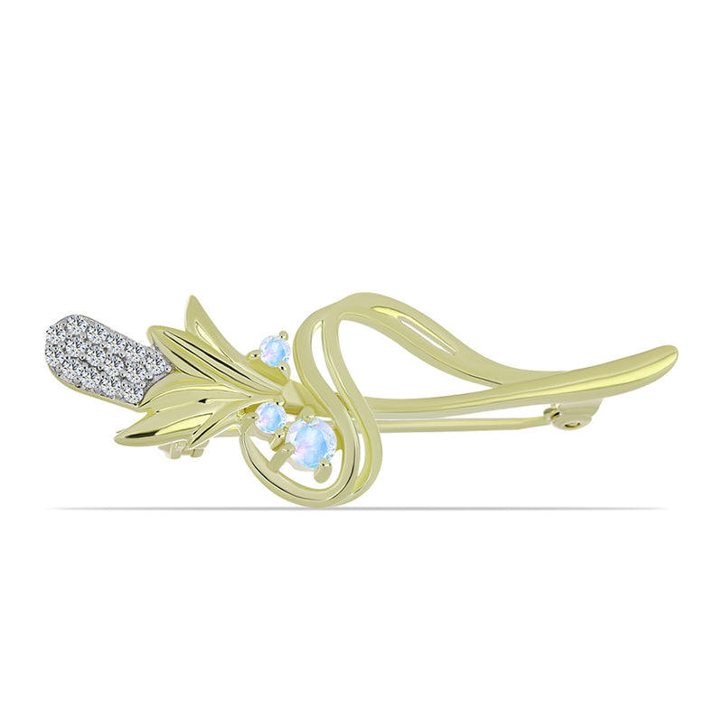 Arannyal Bevont Ezüst Bross Etiópiai Opállal és Fehér Topázzal
