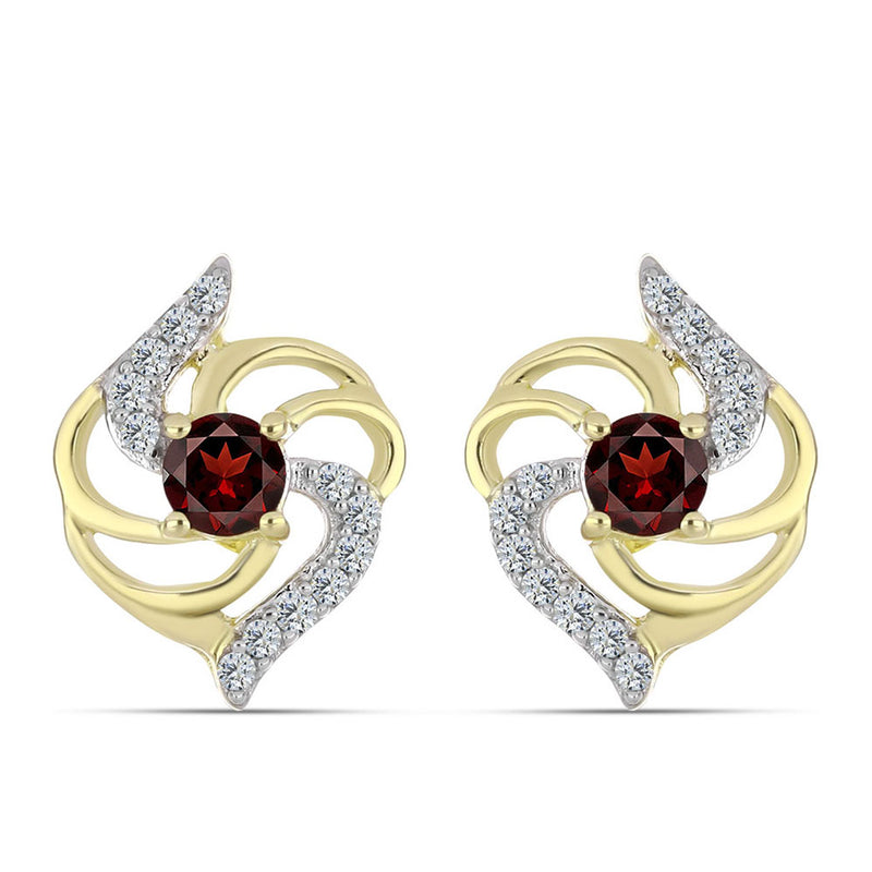 Arannyal Bevont Ezüst Fülbevaló Bíbor Gyémánttal és Fehér Gyémánttal