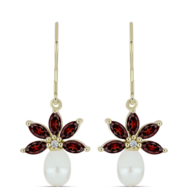 Arannyal Bevont Ezüst Fülbevaló Barton Gránáttal és Fehér Édesvízi Kagylógyönggyel