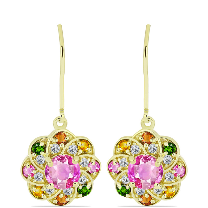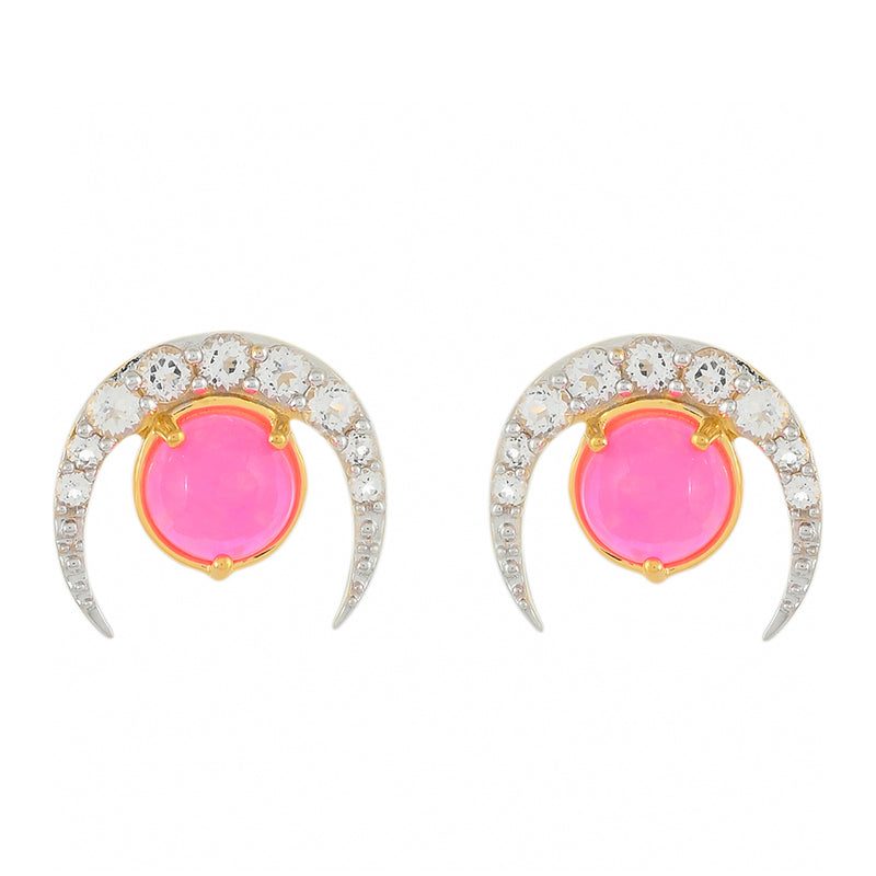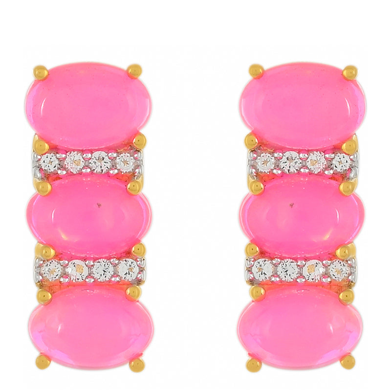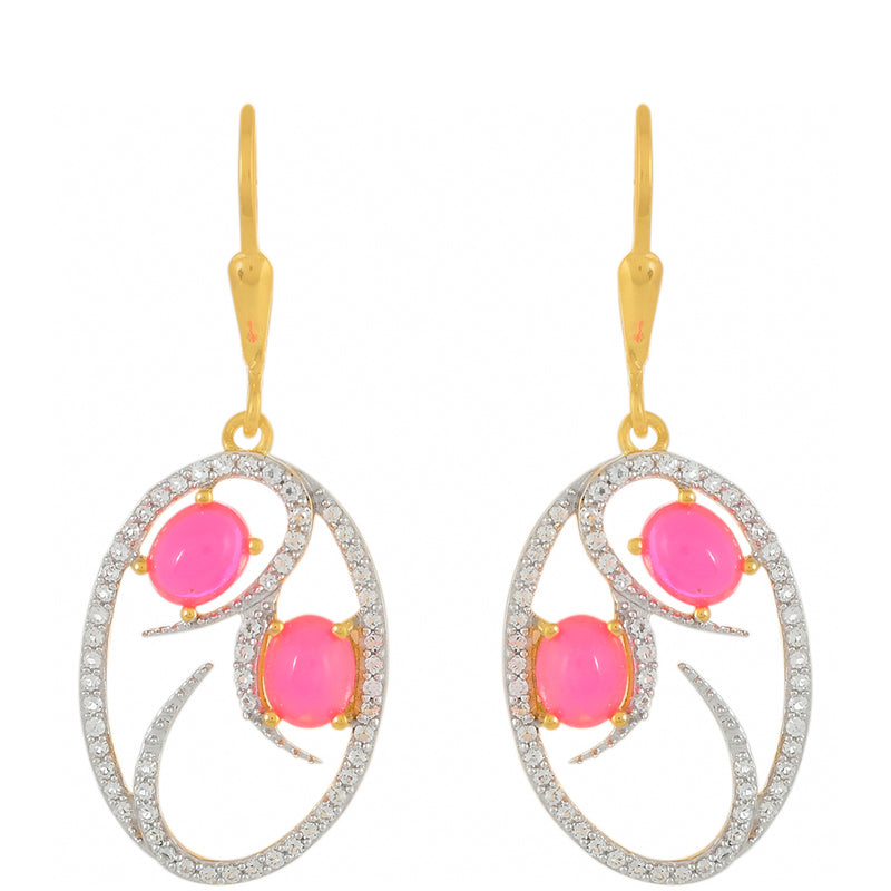 Arannyal Bevont Ezüst Fülbevaló Etiópiai Neon Pink Opállal és Fehér Topázzal