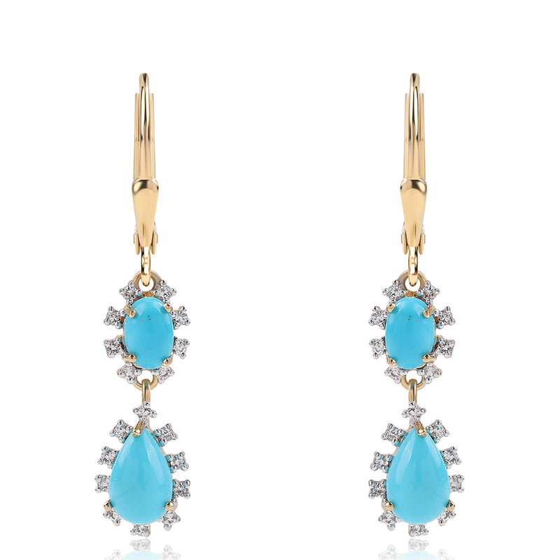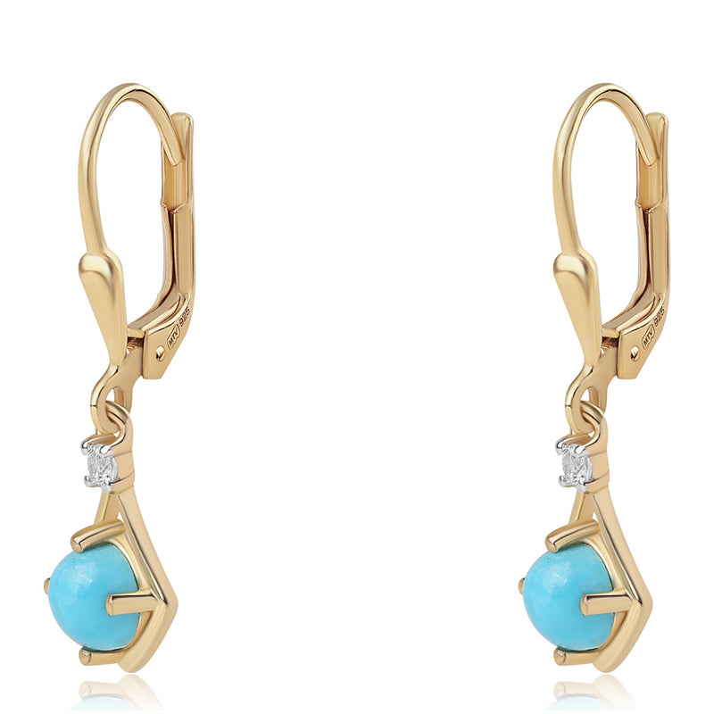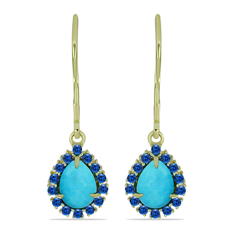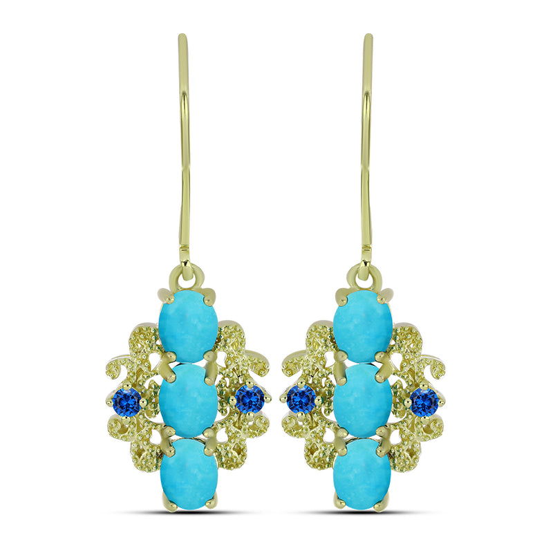 Arannyal Bevont Ezüst Fülbevaló Csipkerózsika Türkizzel és Svájci Kék Topázzal