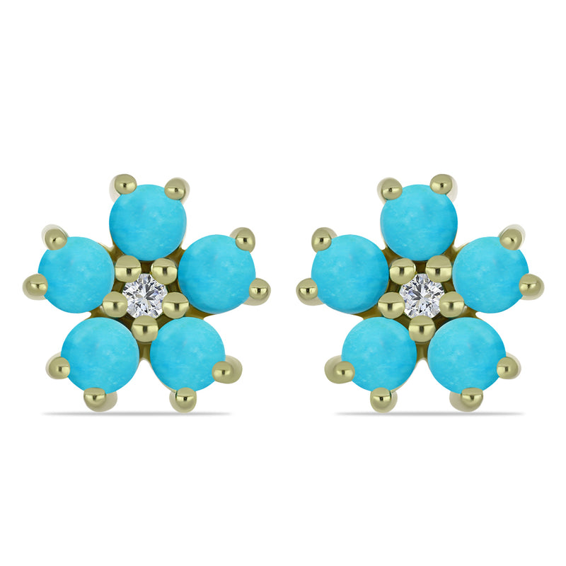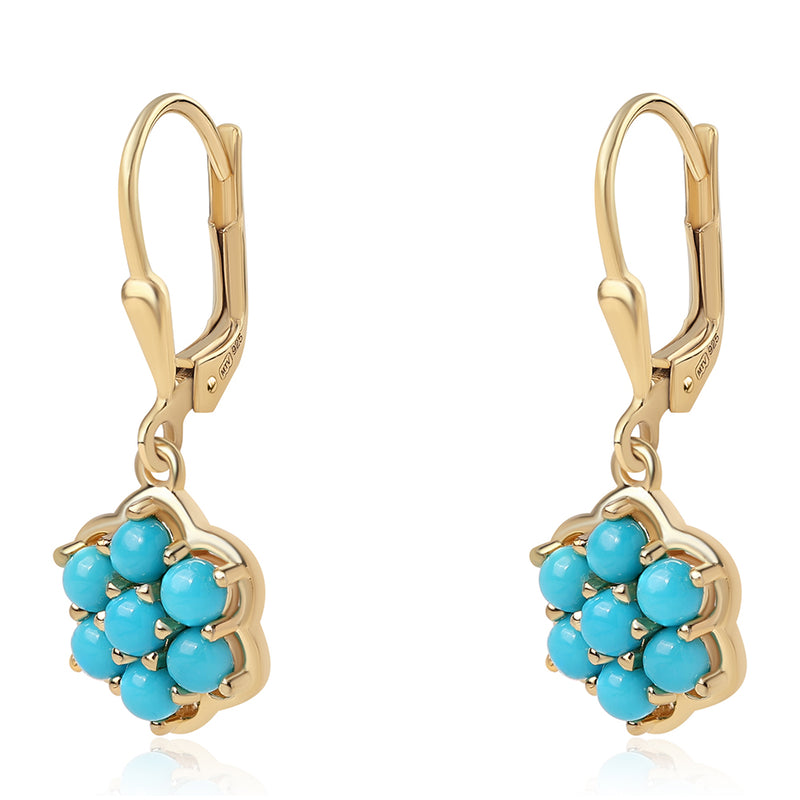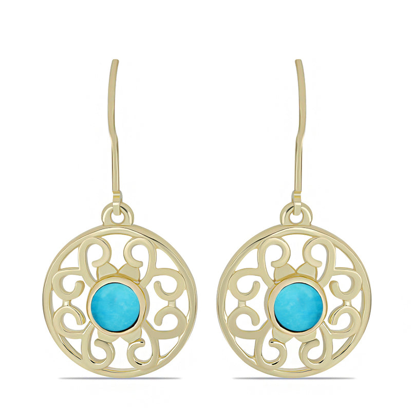 Arannyal Bevont Ezüst Fülbevaló Csipkerózsika Türkizzel