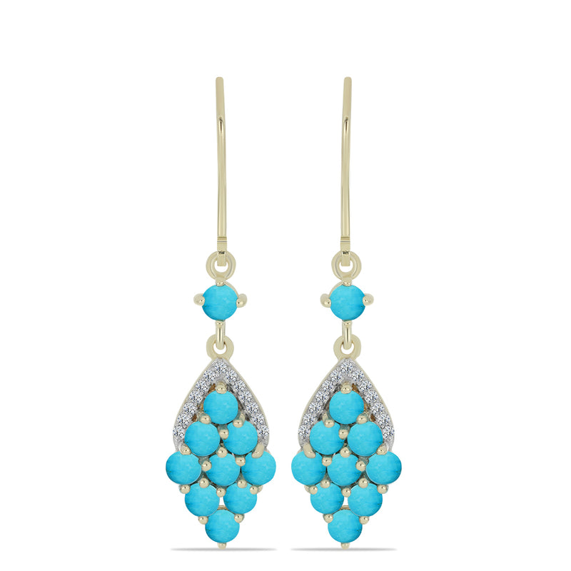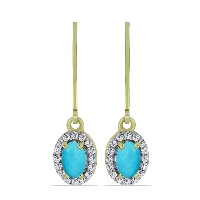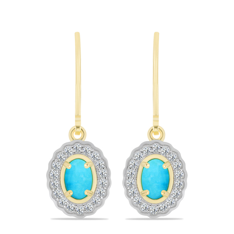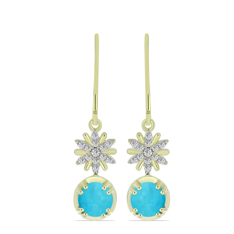 Arannyal Bevont Ezüst Fülbevaló Csipkerózsika Türkizzel és Fehér Topázzal