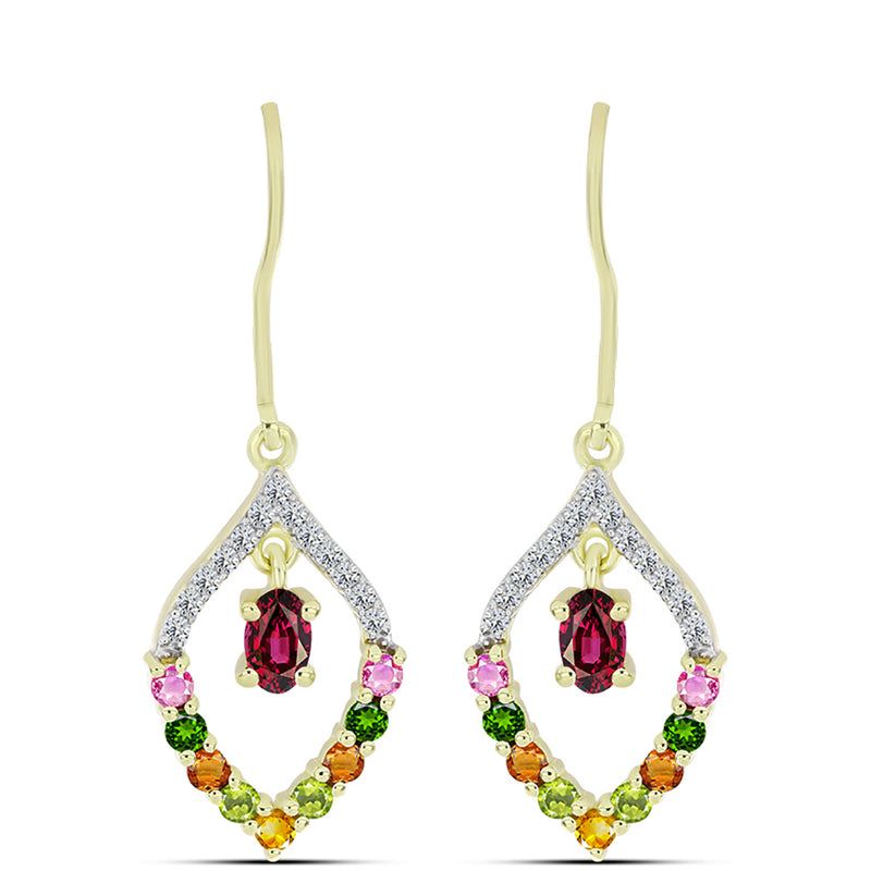Arannyal Bevont Ezüst Fülbevaló Csakra Tourmalinnal és Fehér Topázzal