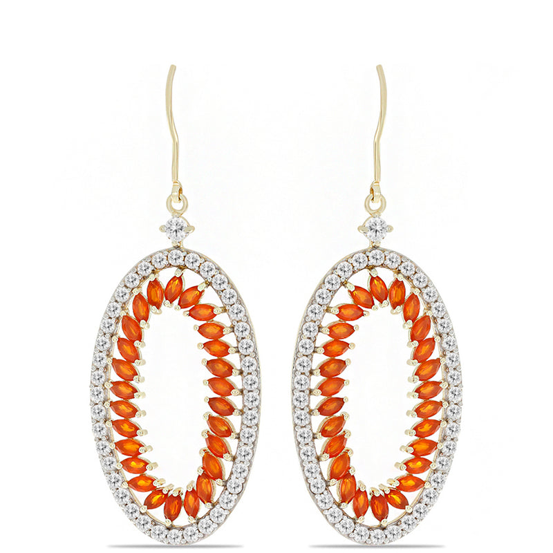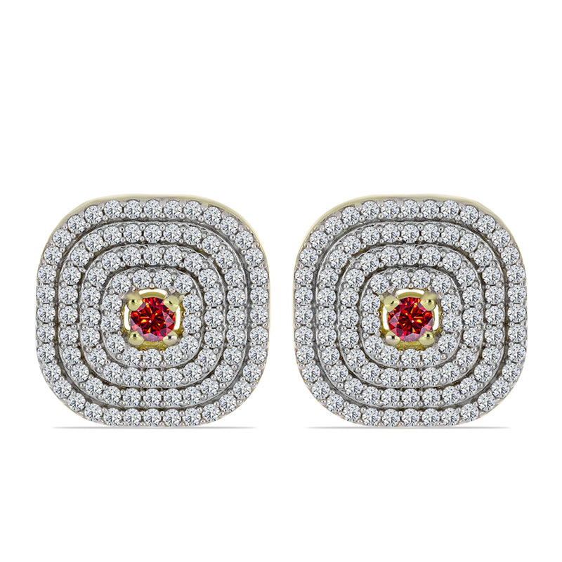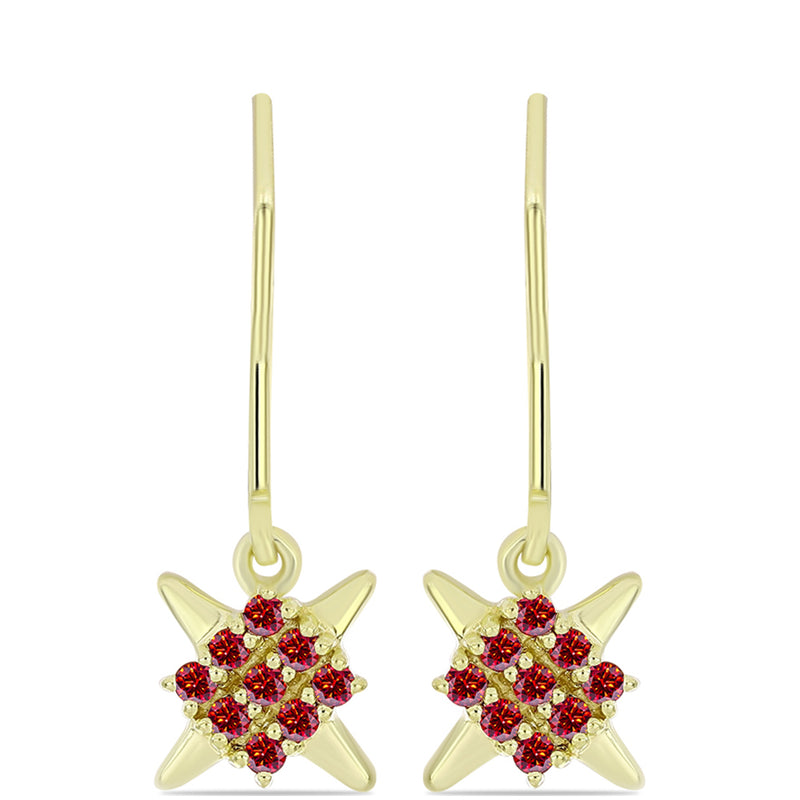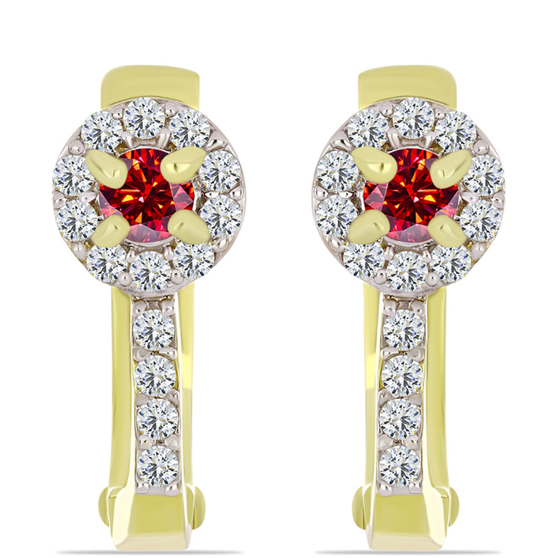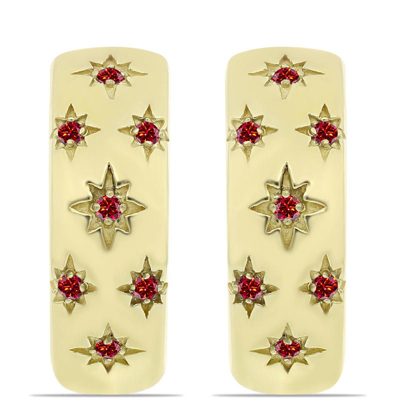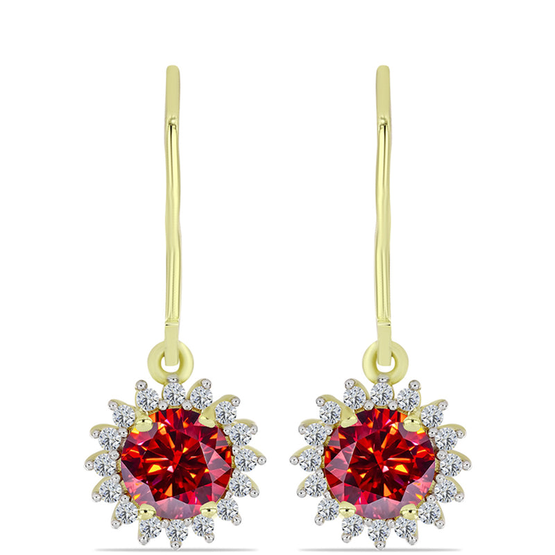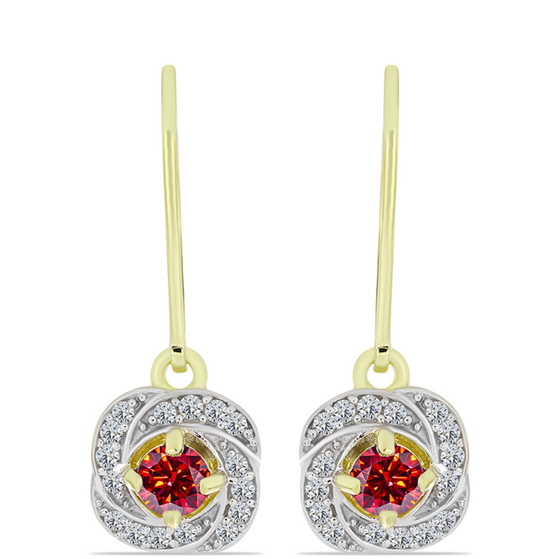 Arannyal Bevont Ezüst Fülbevaló Fenséges Vörös Moissanite-tal és Fehér Topázzal
