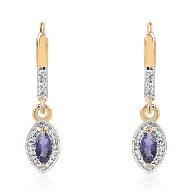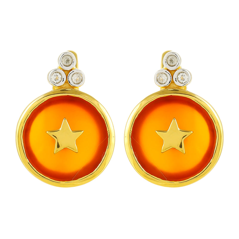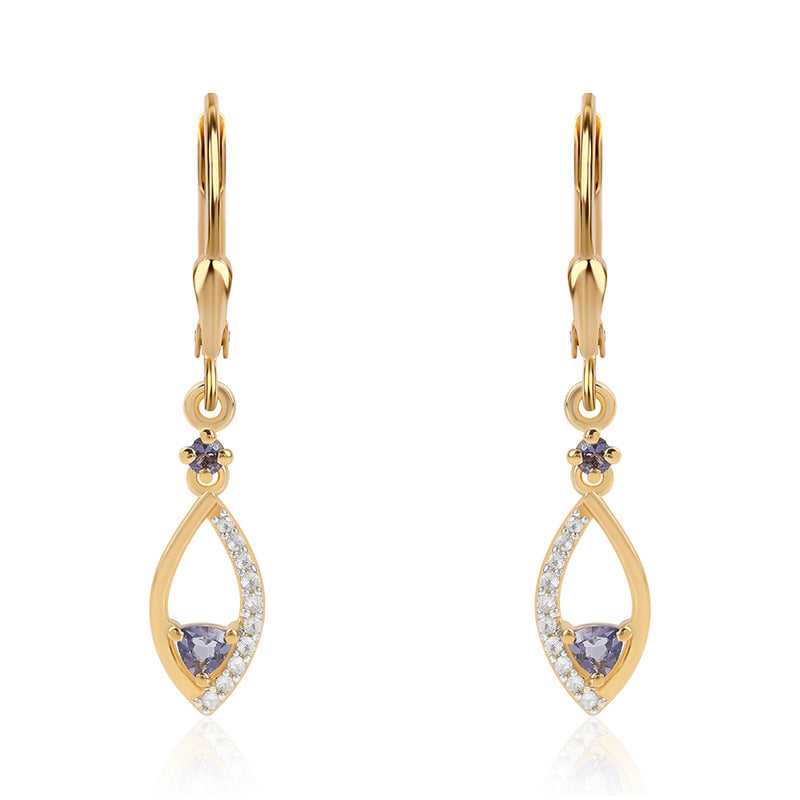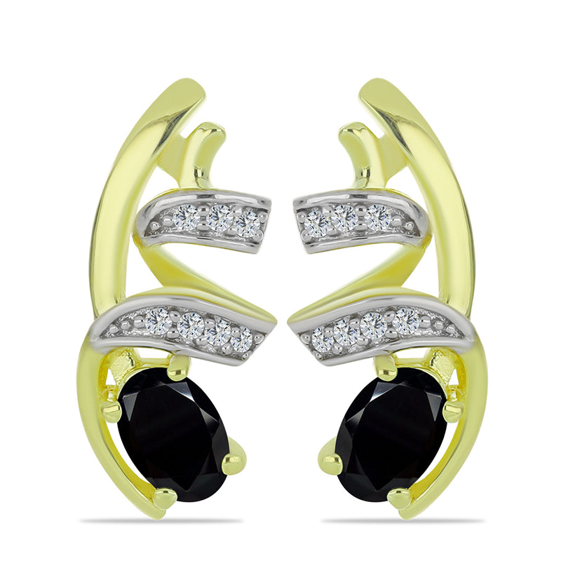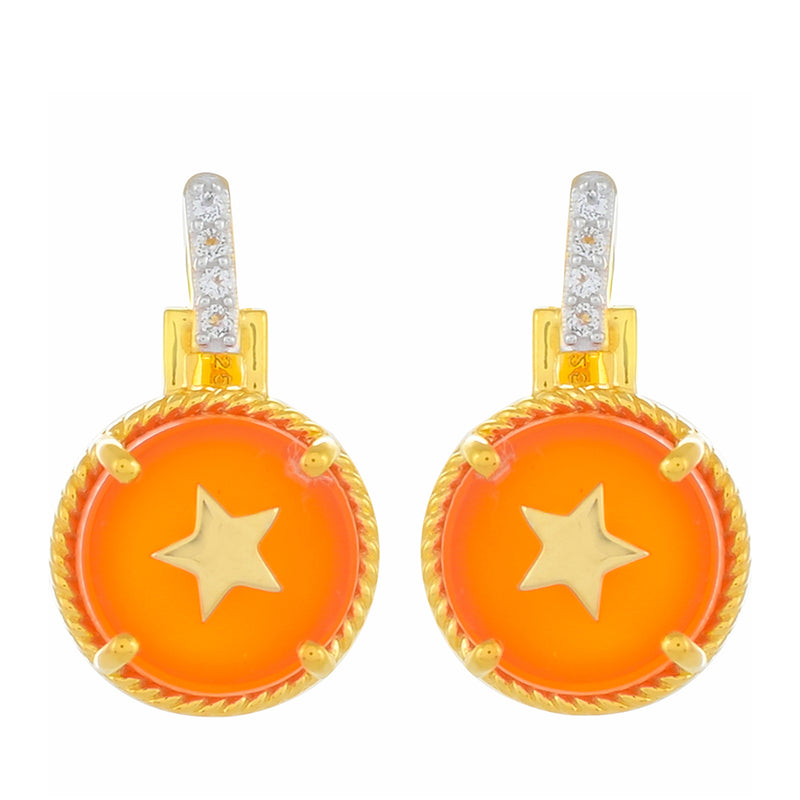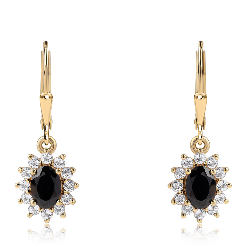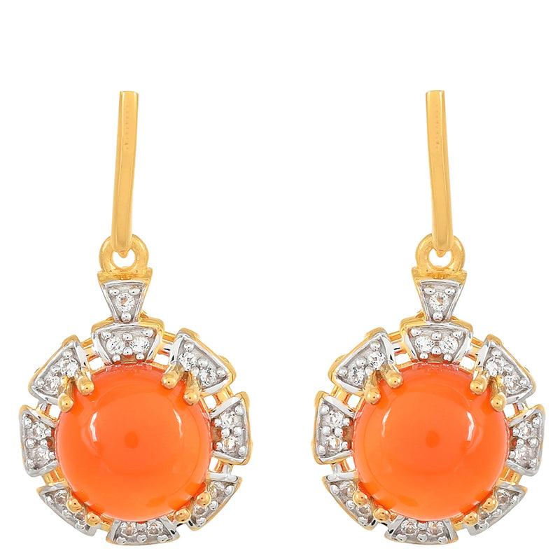 Arannyal Bevont Ezüst Fülbevaló Fenséges Vörös Moissanite-tal és Fehér Topázzal