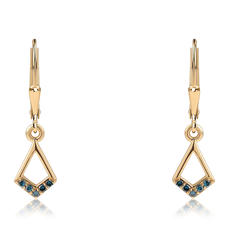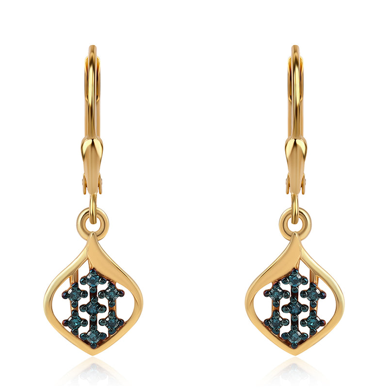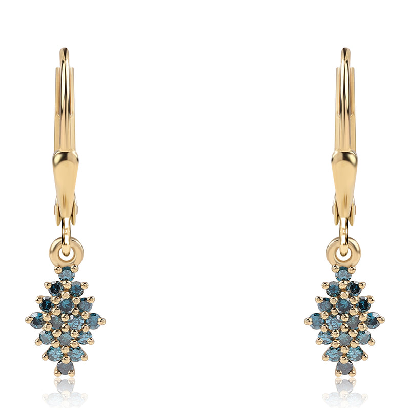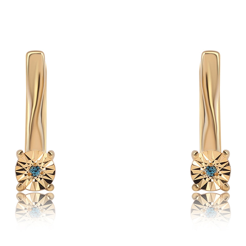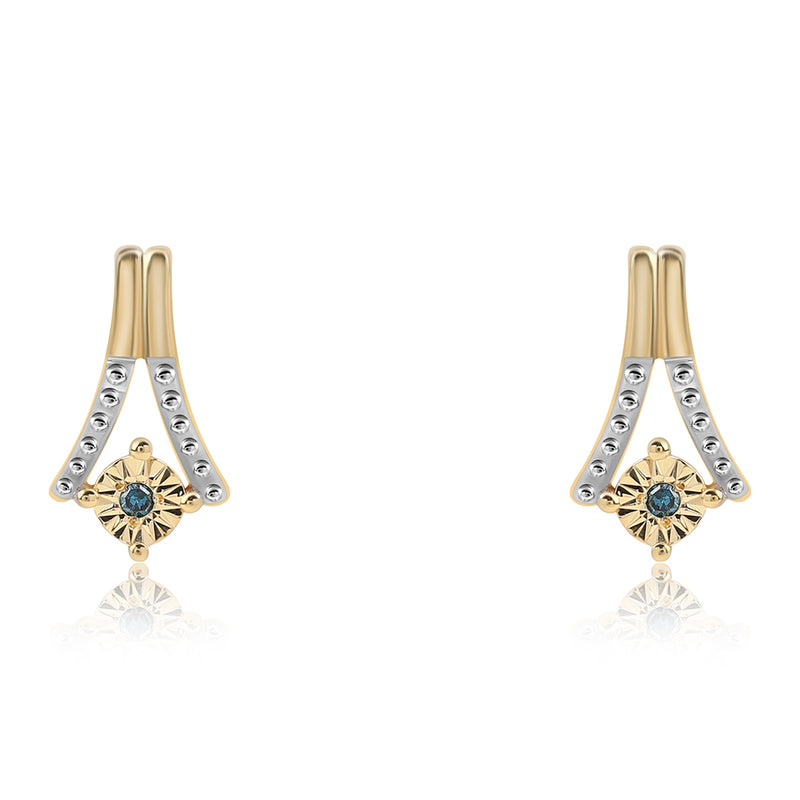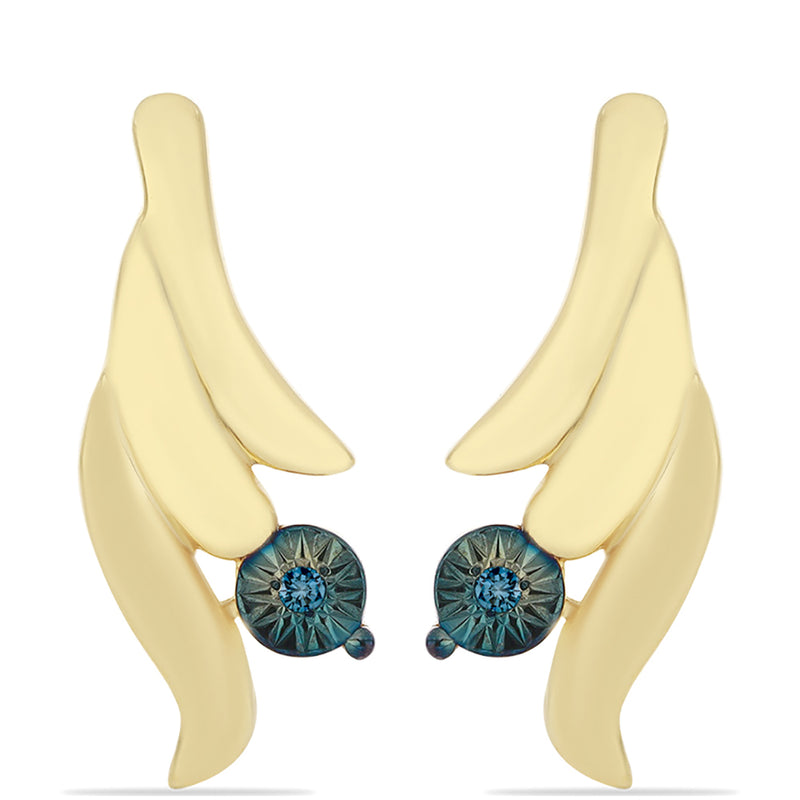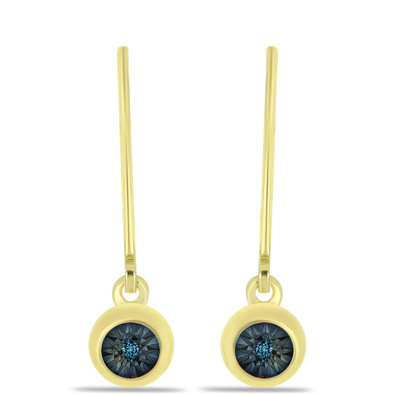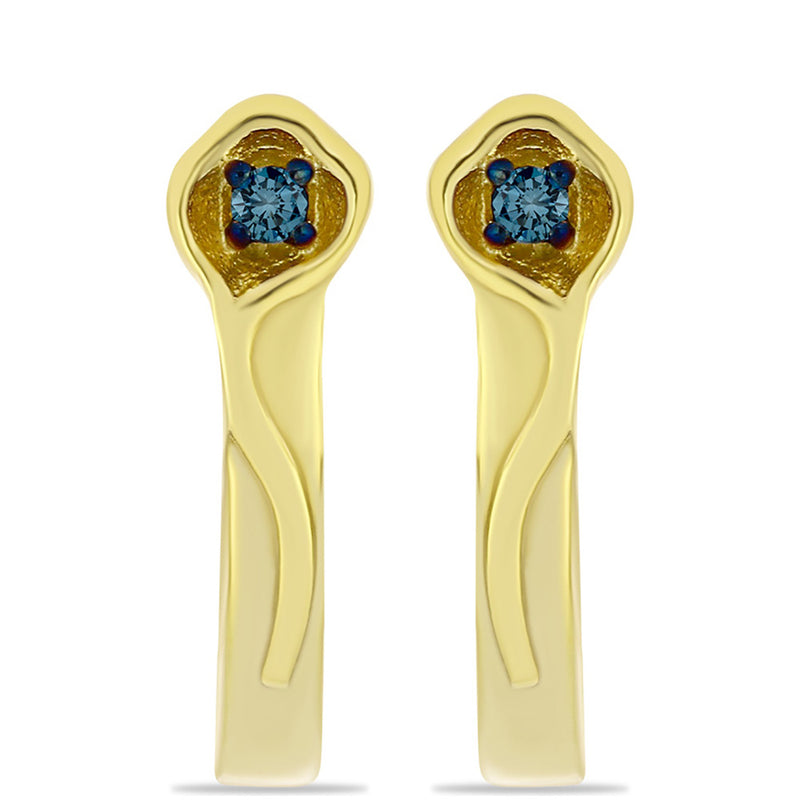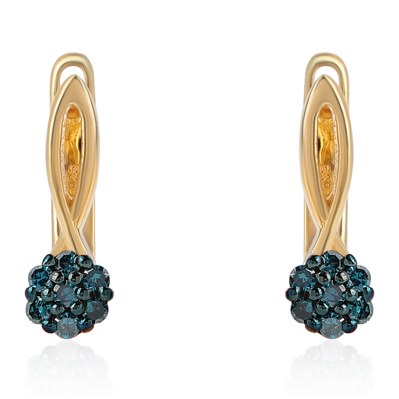 Arannyal Bevont Ezüst Fülbevaló Kék Gyémánttal