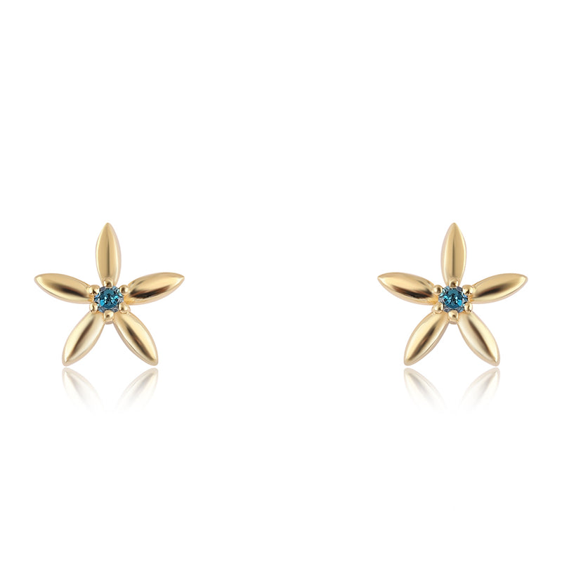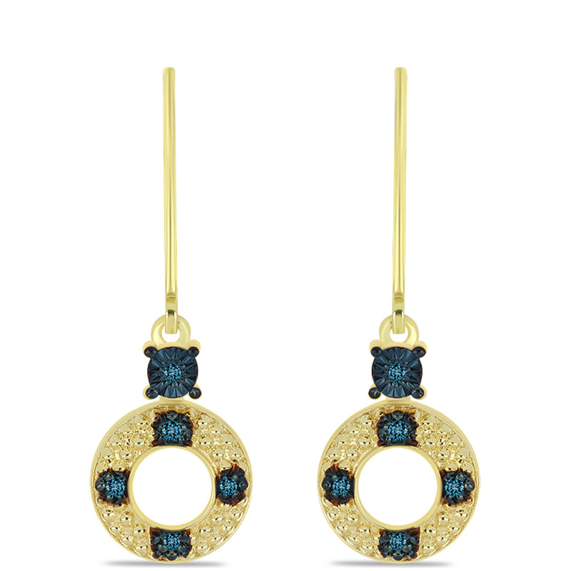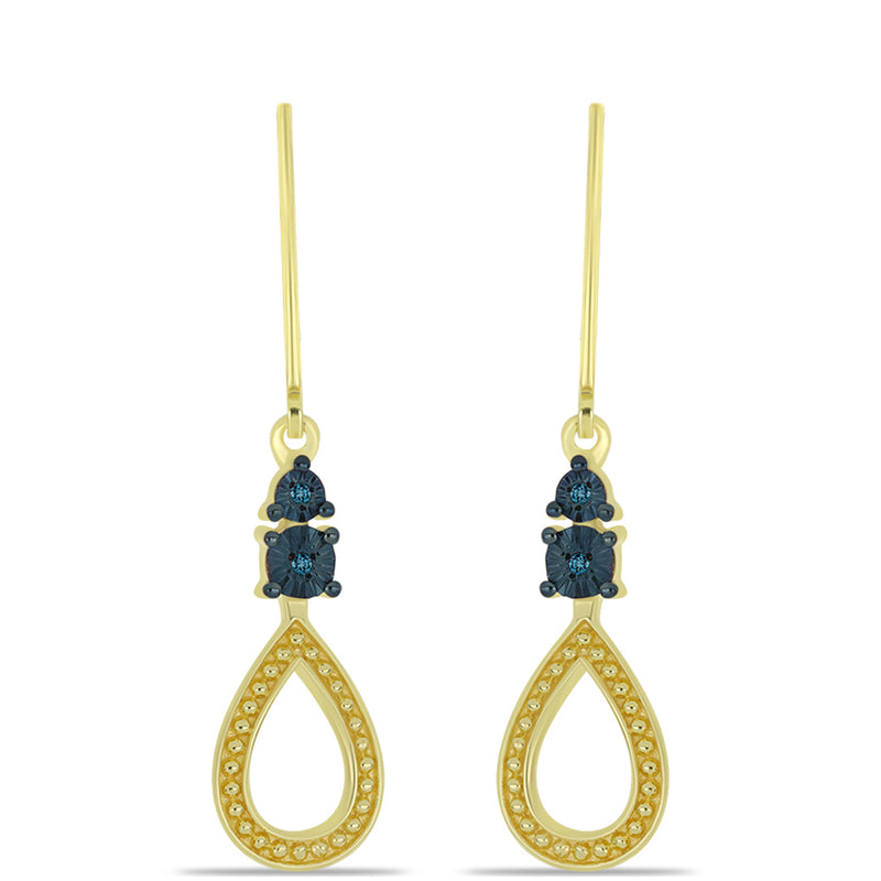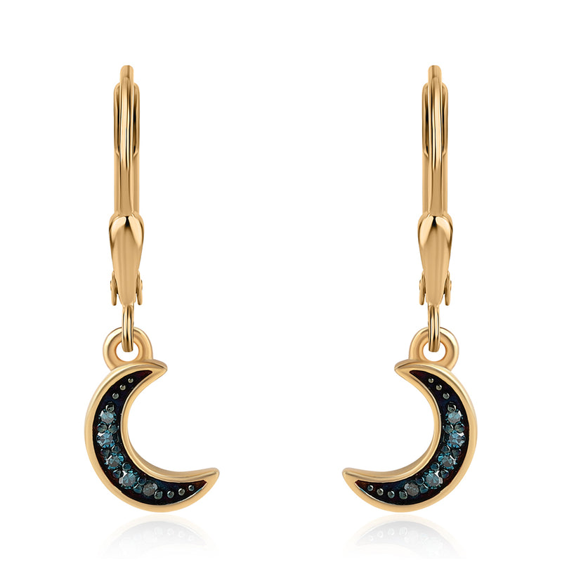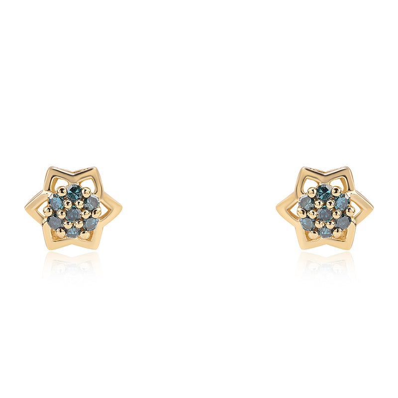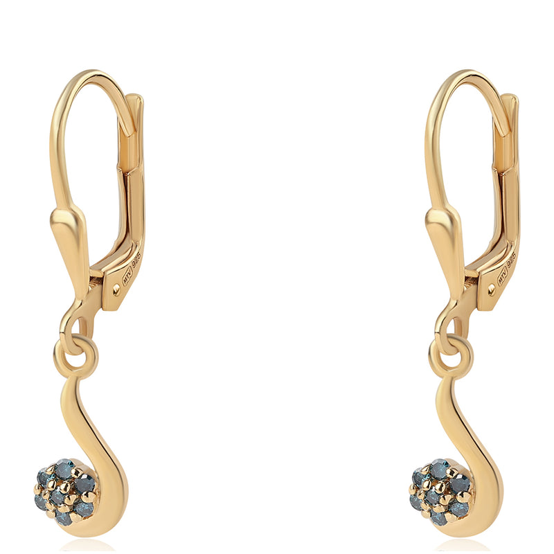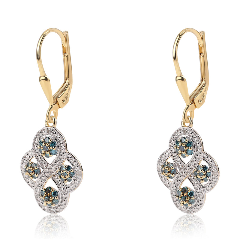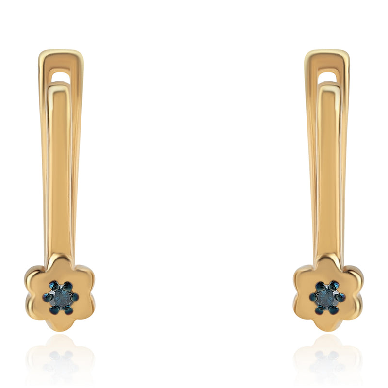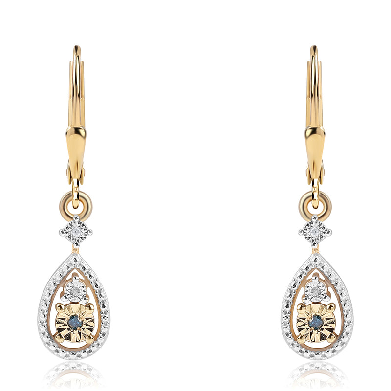 Arannyal Bevont Ezüst Fülbevaló Kék Gyémánttal