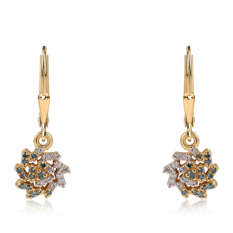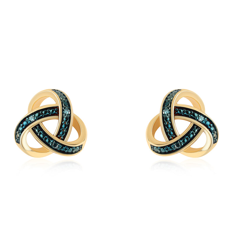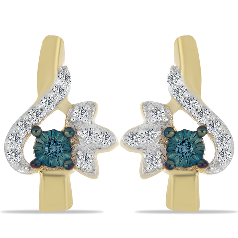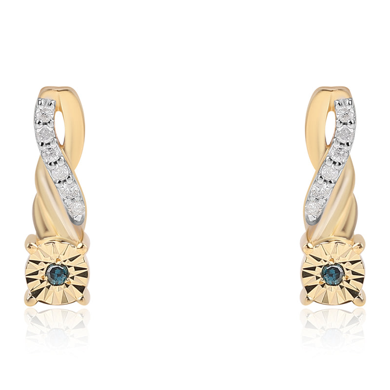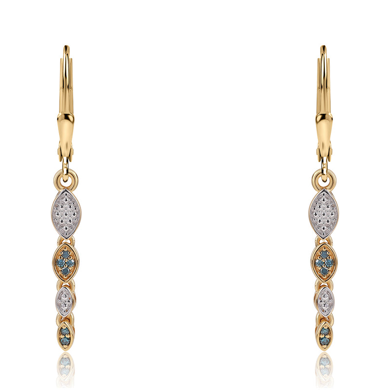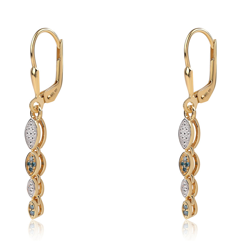 Arannyal Bevont Ezüst Fülbevaló Kék Gyémánttal és Fehér Gyémánttal