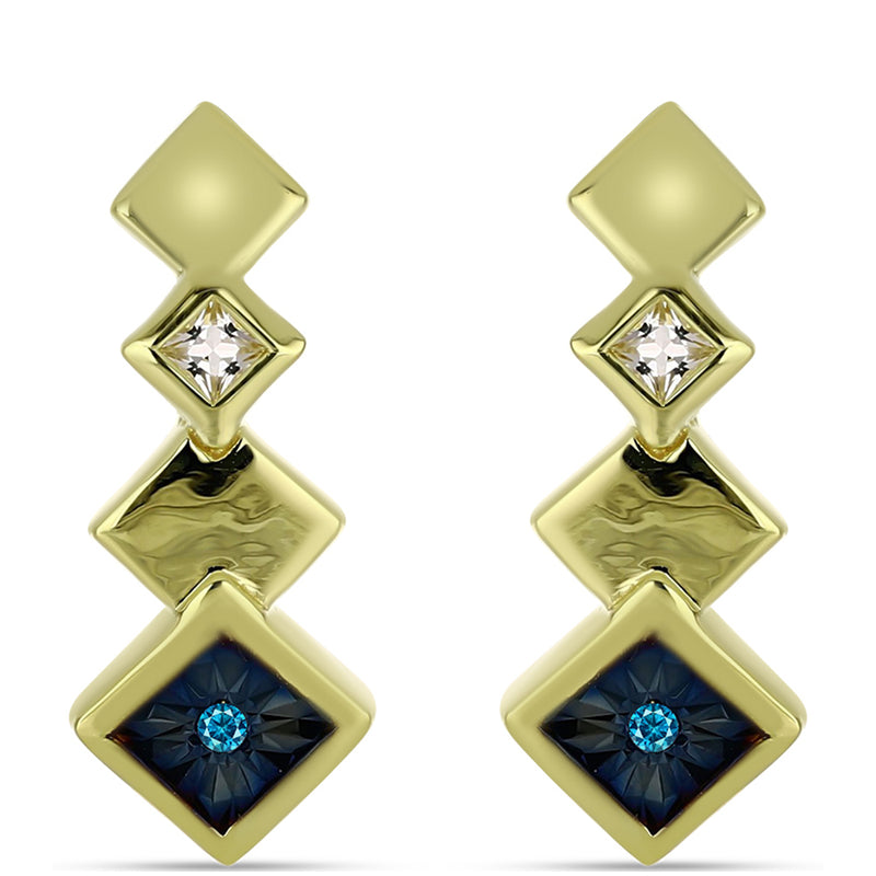 Arannyal Bevont Ezüst Fülbevaló Kék Gyémánttal és Fehér Topázzal