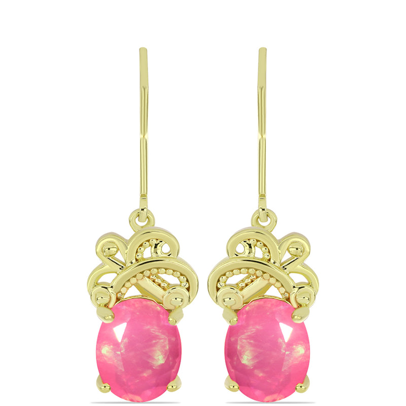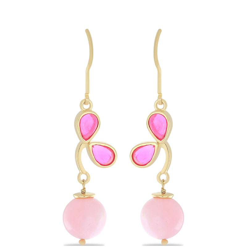 Arannyal Bevont Ezüst Fülbevaló Rózsaszínű Opállal és Rózsaszínű Opállal