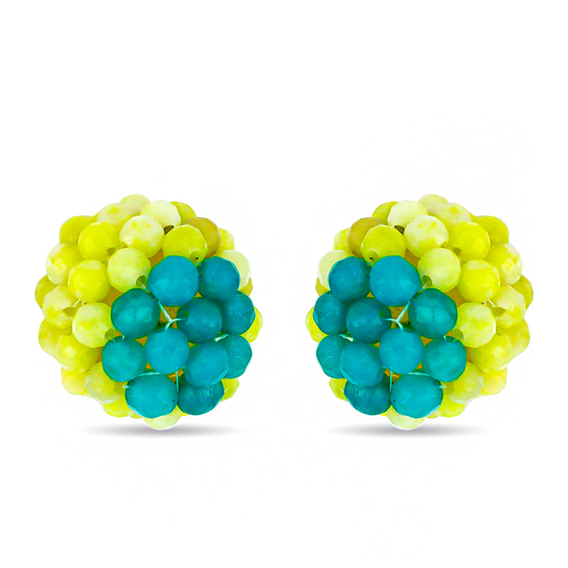 Arannyal Bevont Ezüst Fülbevaló Sárga Szerpentinnel és Kék Jádéval